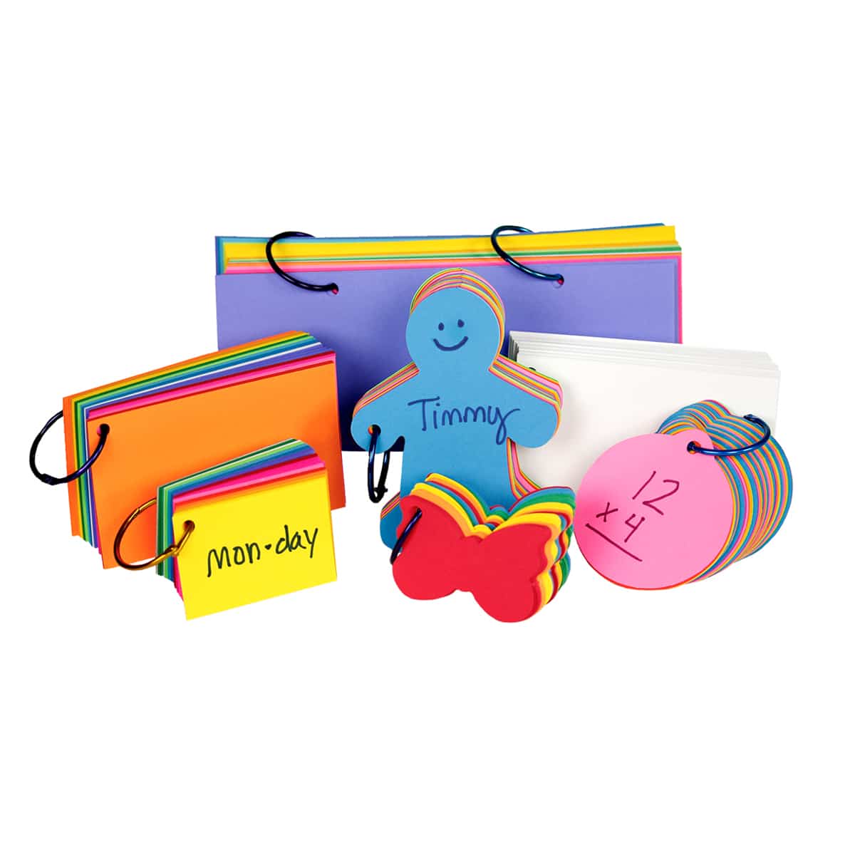 Available in rectangles, circles, butterflies and people shape flashcards. Pick the size and shape that fits your needs!