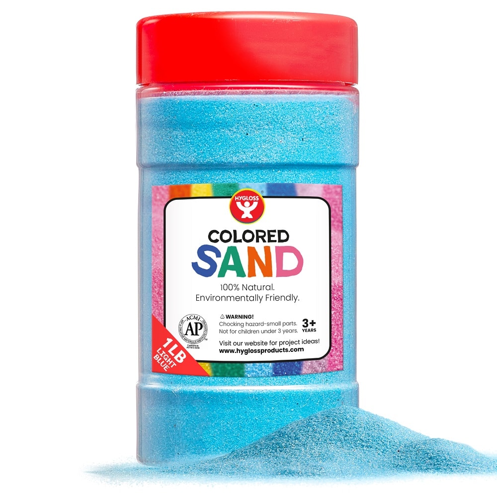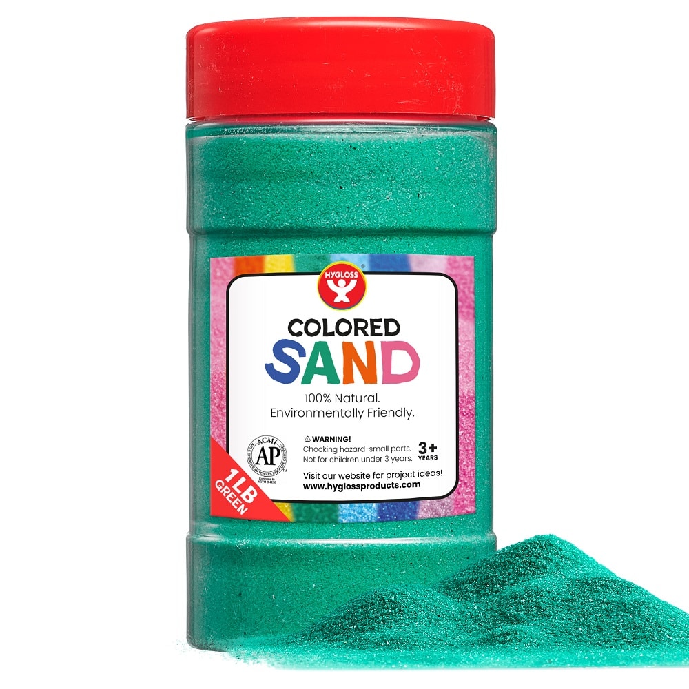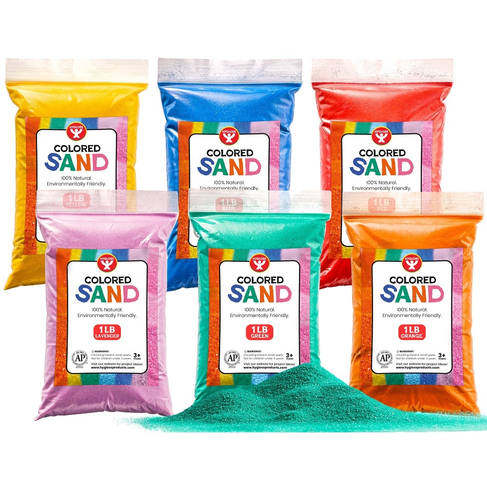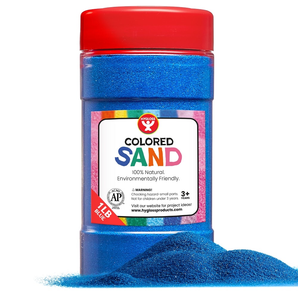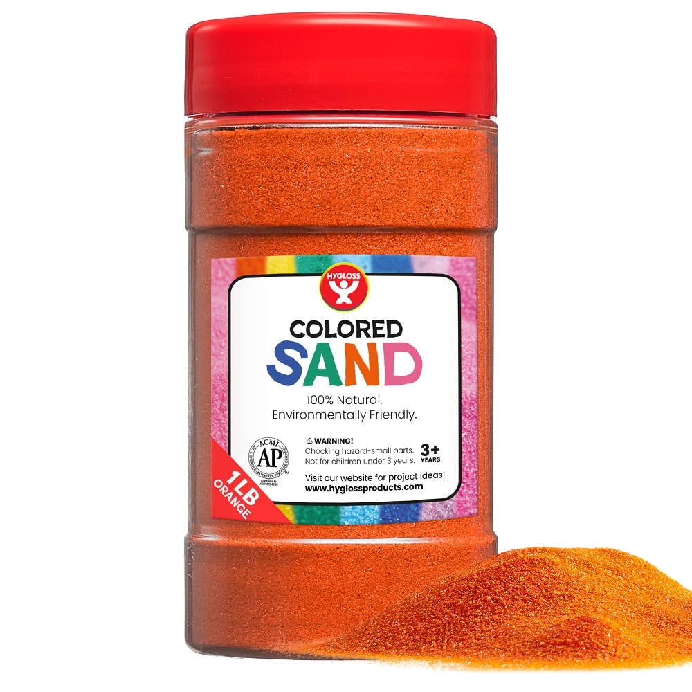 Hygloss Colored Sand the perfect craft sand for all your creative needs. Natural and environmentally friendly, this colored sand is extra fine, easy to clean-up, and safe for kids. The sand comes in 14 different colors as well as assortment packs.Β You'll have a color for every project!Β Each color is packaged in no-mess, easy-to-pour containers. The sand is uniform in size and the colors are vibrant, making it the perfect craft medium for beautiful sand art and layering in a bottle. Brighten your room; fill a glass vase with bright colored sand and add a fake plant. The craft sand is also great for DIY sand candles! Colorful Sand is helpful for teachers who want to incorporate tactile learning into their lessons. Pour sand onto a flat surface or plate, and let children use their fingers to draw letters, numbers, shapes and more right in the sand!