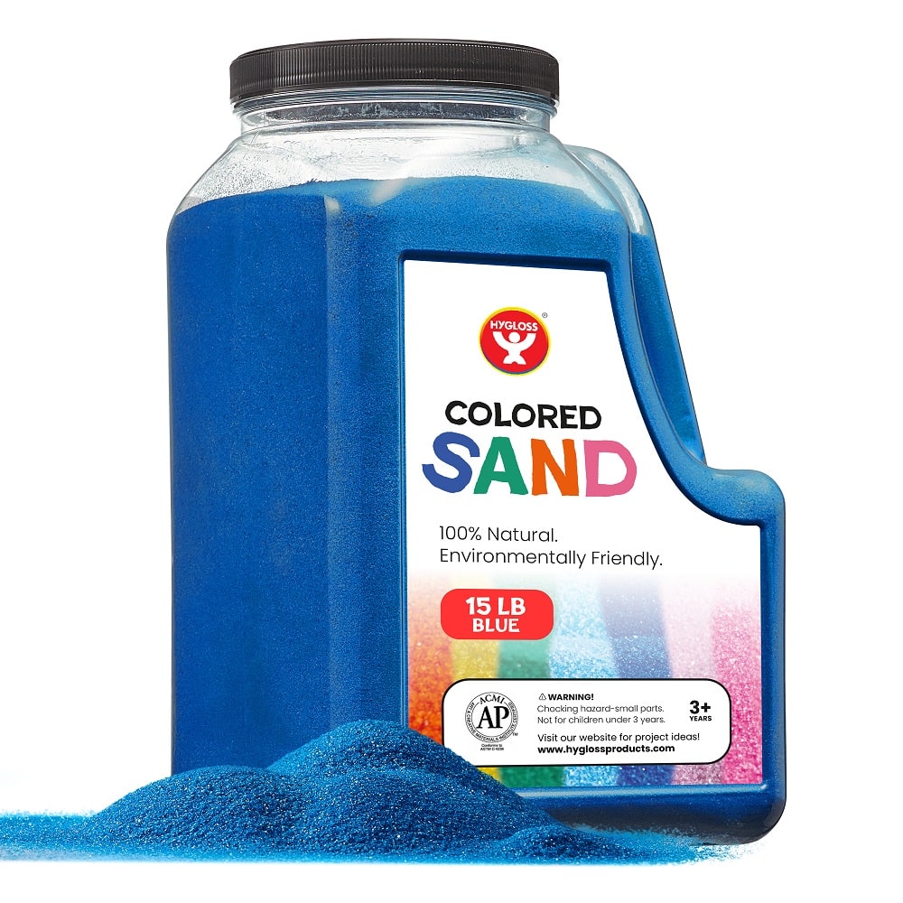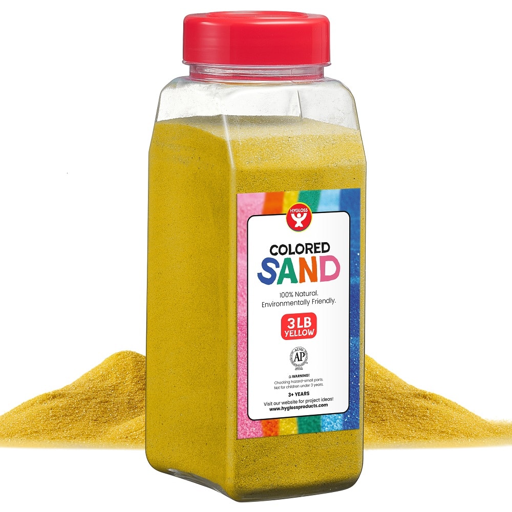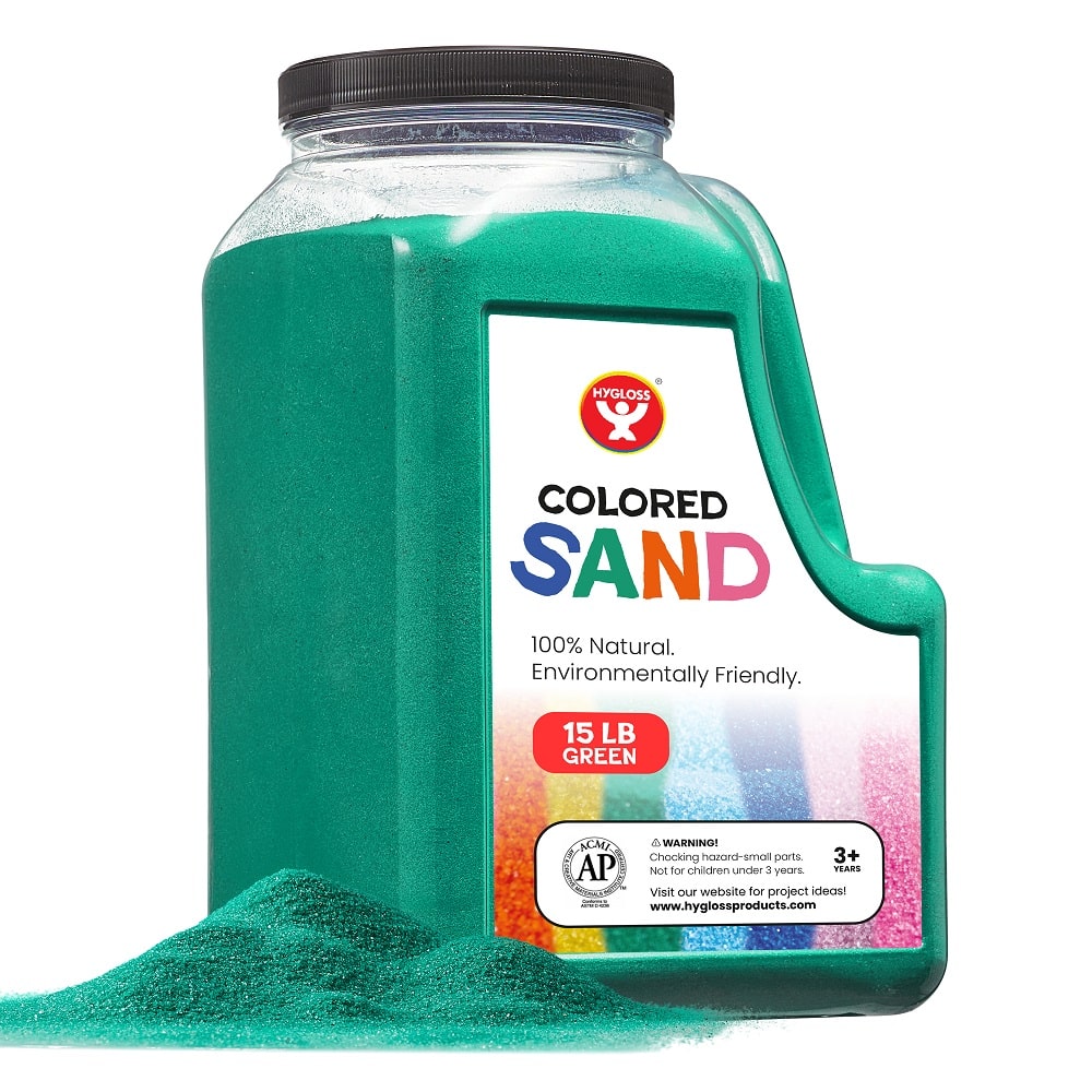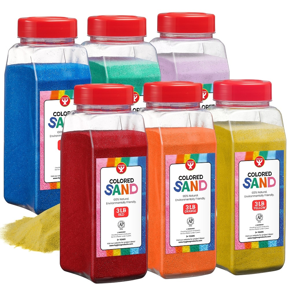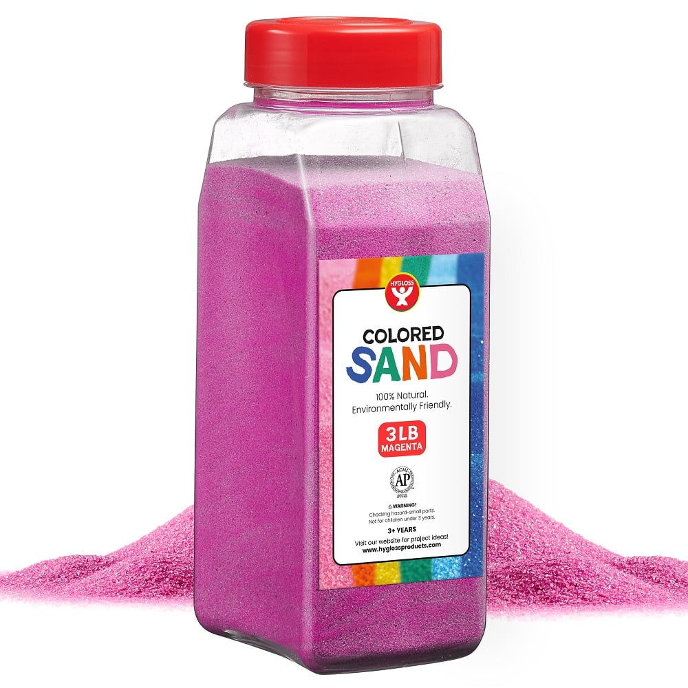 Hygloss Colored Sand the perfect craft sand for all your creative needs. Natural and environmentally friendly, this colored sand is extra fine, easy to clean-up, and safe for kids. The sand comes in 14 different colors as well as assortment packs.Β You'll have a color for every project!Β Each color is packaged in no-mess, easy-to-pour containers. The sand is uniform in size and the colors are vibrant, making it the perfect craft medium for beautiful sand art and layering in a bottle. Brighten your room; fill a glass vase with bright colored sand and add a fake plant. The craft sand is also great for DIY sand candles! Colorful Sand is helpful for teachers who want to incorporate tactile learning into their lessons. Pour sand onto a flat surface or plate, and let children use their fingers to draw letters, numbers, shapes and more right in the sand!