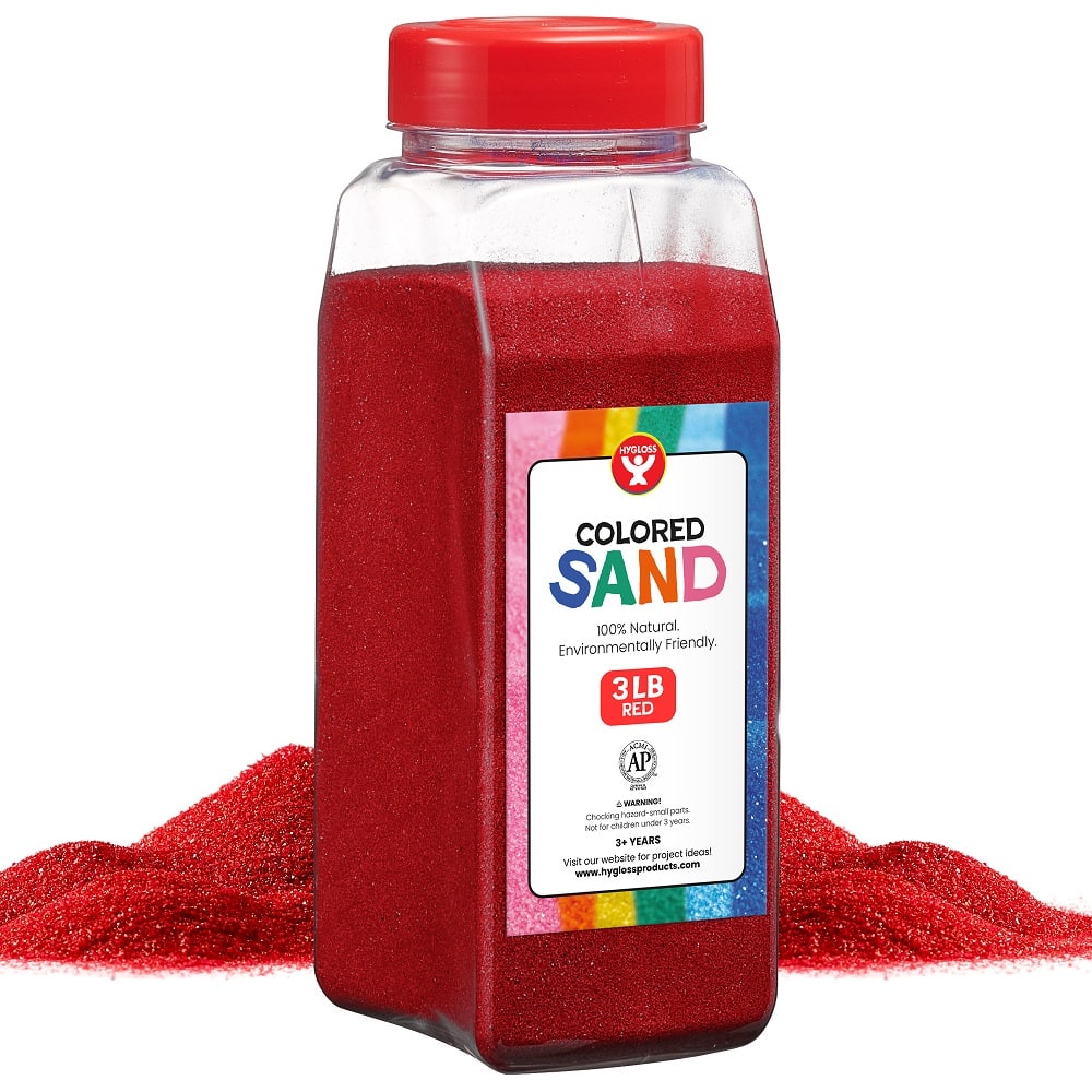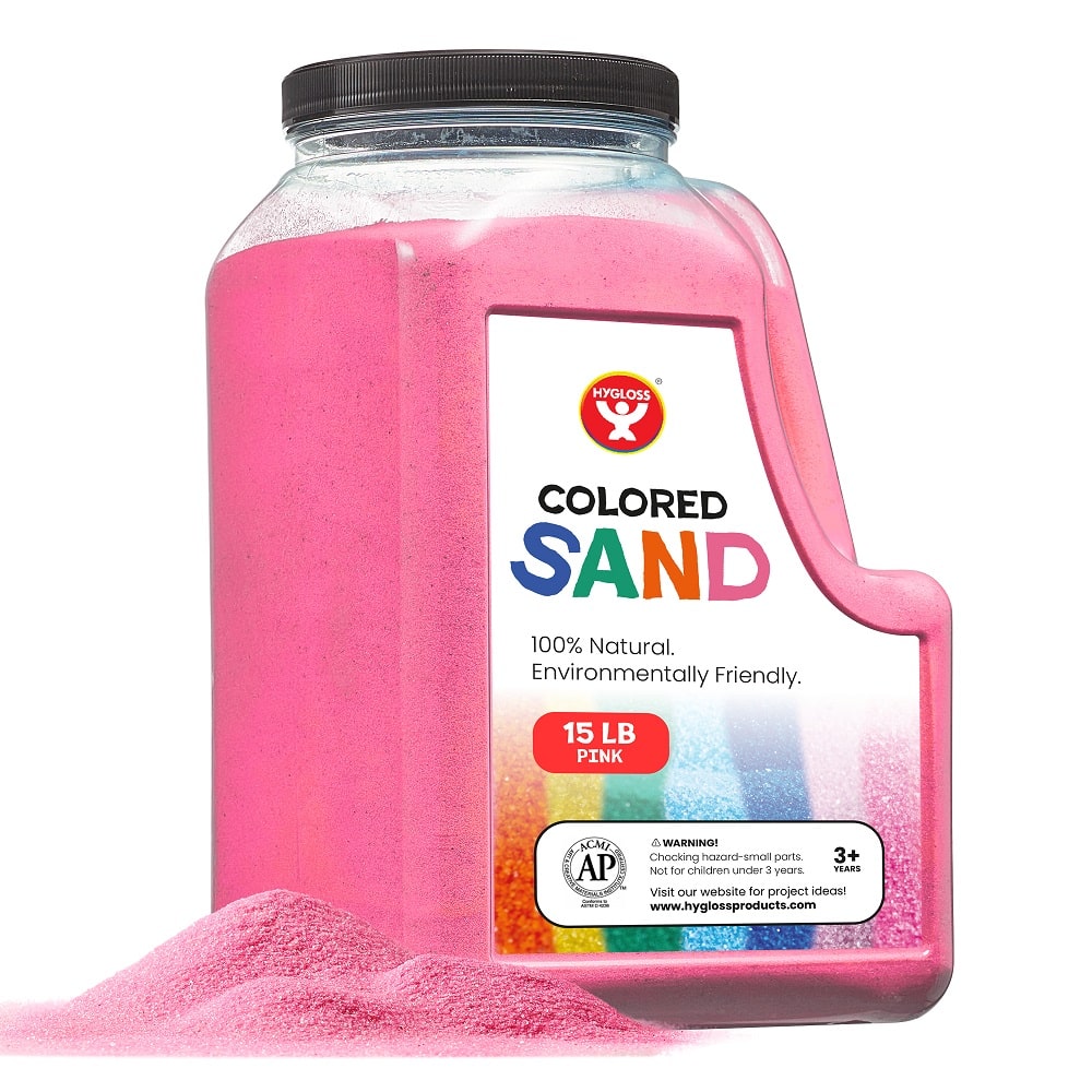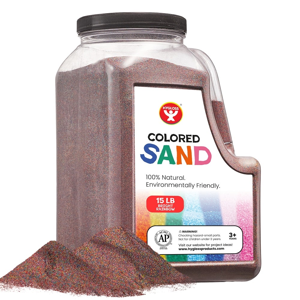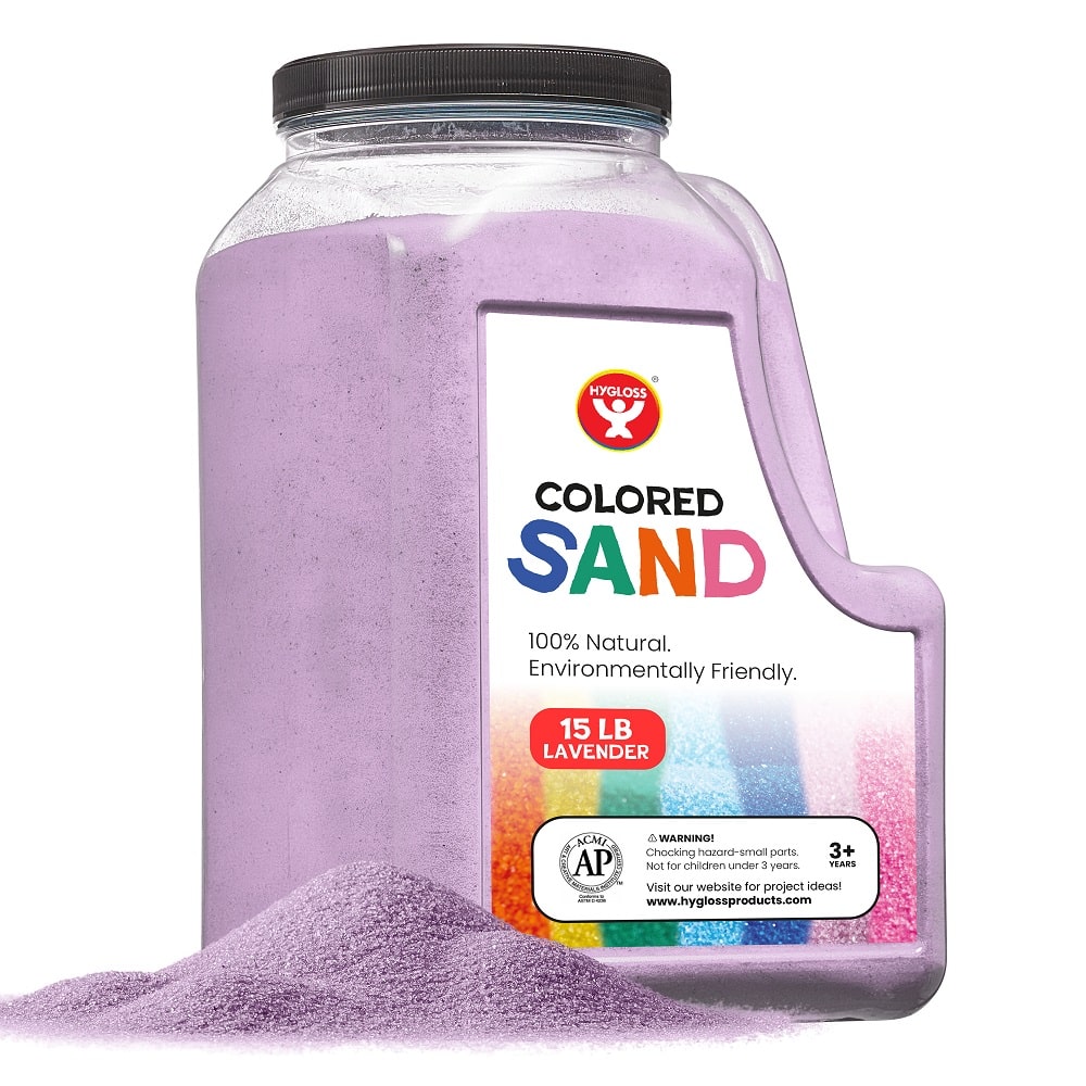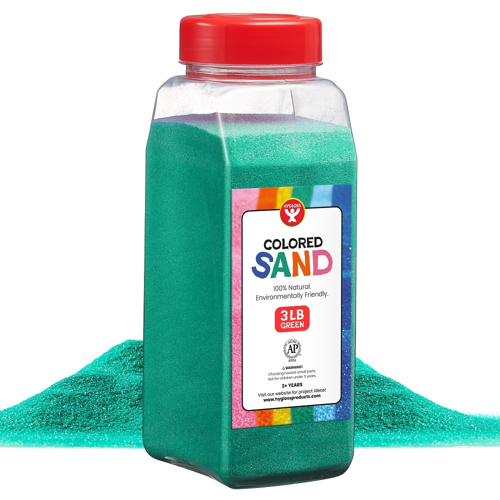 Hygloss Colored Sand the perfect craft sand for all your creative needs. Natural and environmentally friendly, this colored sand is extra fine, easy to clean-up, and safe for kids. The sand comes in 14 different colors as well as assortment packs.Β You'll have a color for every project!Β Each color is packaged in no-mess, easy-to-pour containers. The sand is uniform in size and the colors are vibrant, making it the perfect craft medium for beautiful sand art and layering in a bottle. Brighten your room; fill a glass vase with bright colored sand and add a fake plant. The craft sand is also great for DIY sand candles! Colorful Sand is helpful for teachers who want to incorporate tactile learning into their lessons. Pour sand onto a flat surface or plate, and let children use their fingers to draw letters, numbers, shapes and more right in the sand!