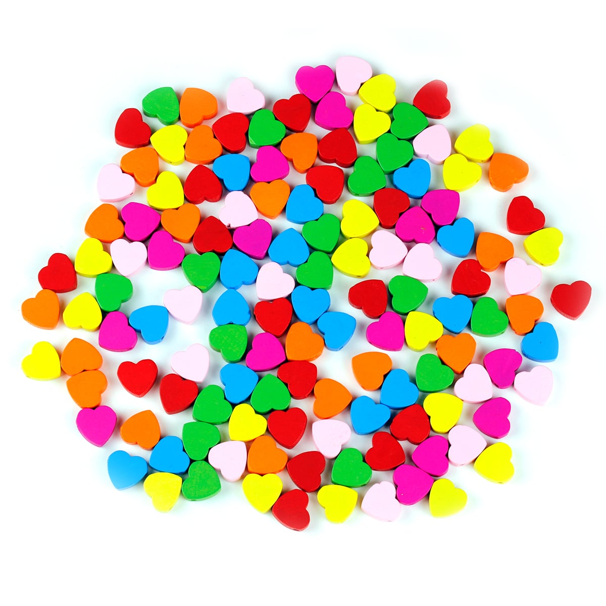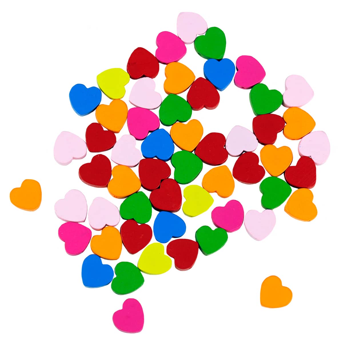 Beads measure 18 mm. Use bright wooden heart beads for Valentine's Day crafts projects, jewelry designing and much more. Try embellishing your wooden crafts with these Bright Wood Heart Beads, for a unique 3-D effect. Kid friendly heart beads are colorful and easy to use. Recommended for children ages 8 and up.