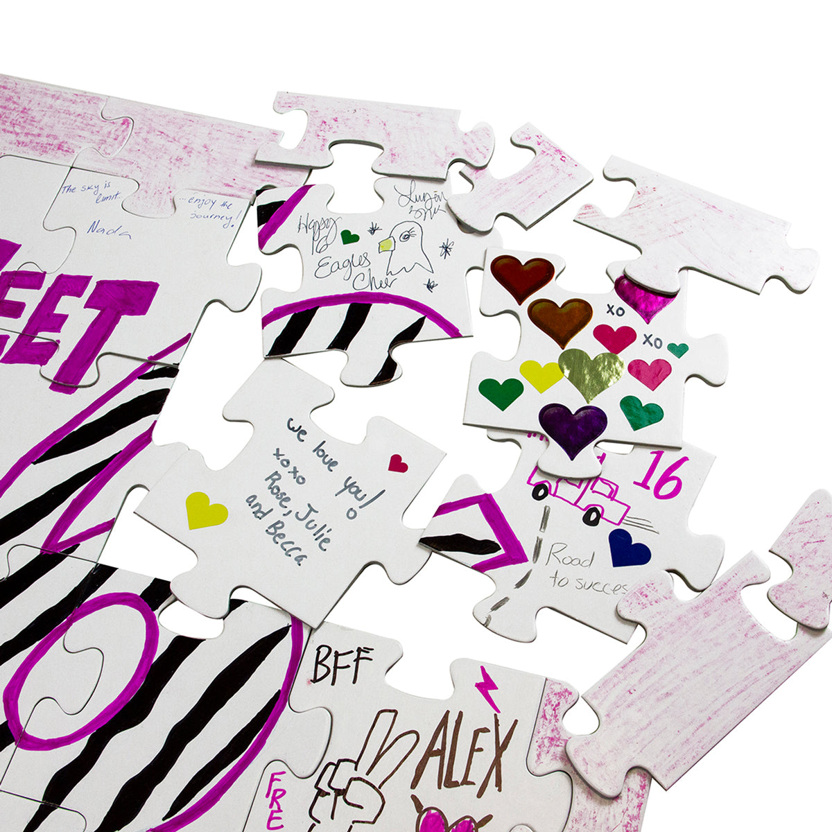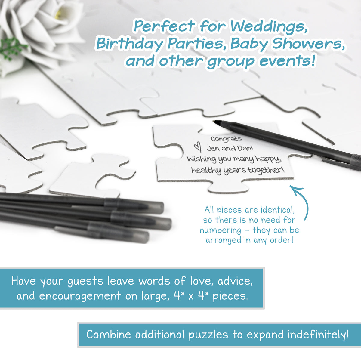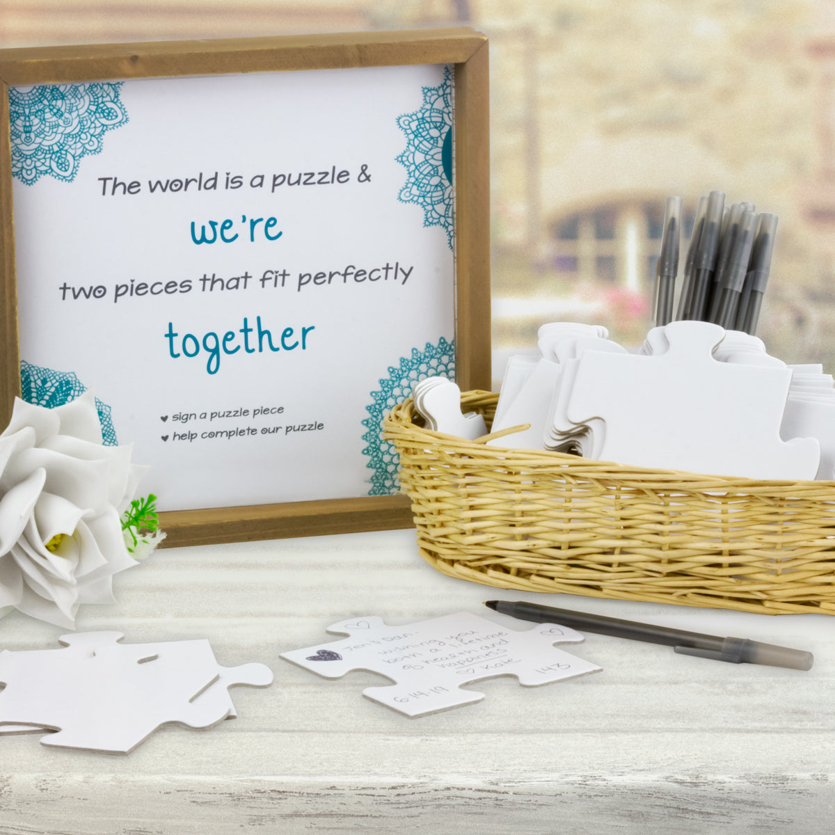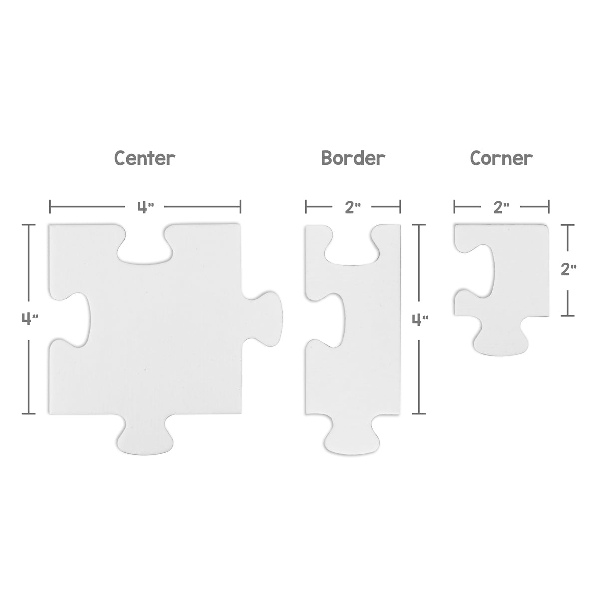Universal puzzle pieces that fit together in any combination. Each person can decorate one puzzle piece to fit together to form the whole puzzle. Great for group/classroom projects, weddings, birthdays, etc. Center pieces measure 4" x 4". Border pieces are 2" x 4". Corner pieces are 2" x 2". Award winning product!