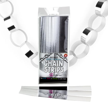 Take you creativity to the next level with Hygloss Metallic Slver Foil Board Chain Strips! Make stunning paper chain crafts with these pre-cut metallic strips. Includes 48 strips. Paper chains are an easy and fun kids craft. Make beautiful paper chains with these pre-cut Metallic Silver Chain Strips. Silver metallic foil board really makes an impression on everyone that sees it! Just staple, tape or glue the ends of the paper strips together for a great homemade party decoration idea. Make stunning classroom decorations and bulletin board borders, use them to make letters or for paper weaving projects as well.