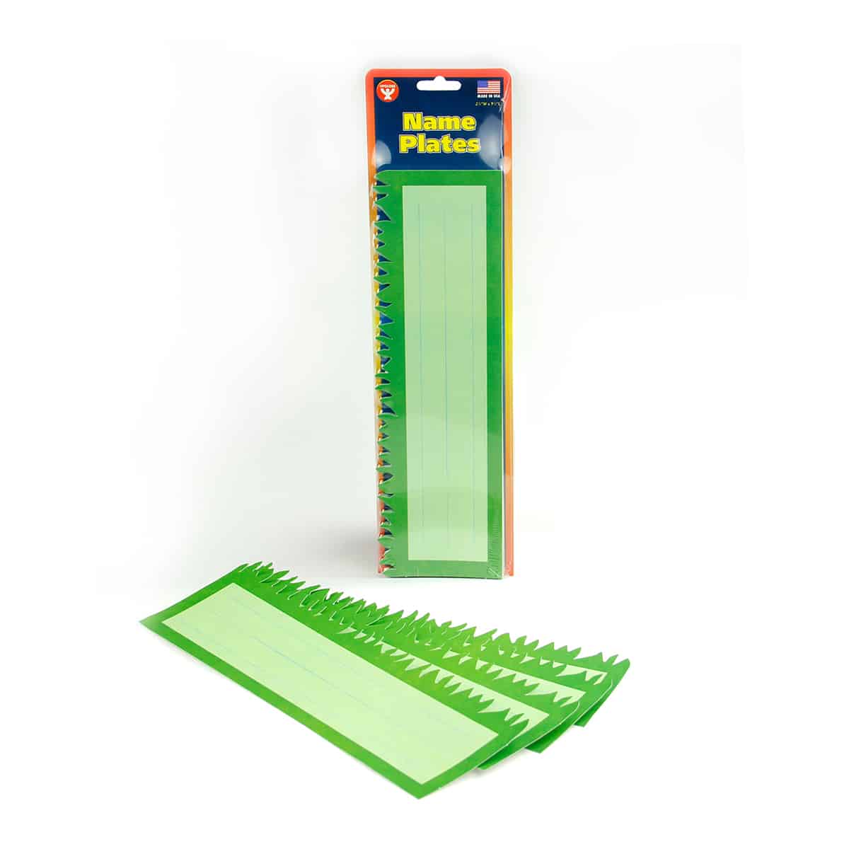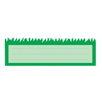 Welcome kids with these bright name plates! Perfect for desk tops, cubbies, lockers, bulletin boards, and other classroom use. Guides on name plates allow children to practice printed and cursive writing. Name plates measure 9 1/2 x 3 inches. These attractive die-cut green grass name plates will liven up any classroom and coordinate with a variety decoration themes. Made from high quality card stock with a smooth, glossy finish, they are perfect for labeling desks, lockers, hooks, cubbies and more. Students can follow the the guides to neatly print their names on the plates. Hygloss Name Plates are guaranteed to enhance your classroom setting! For a super-coordinated classroom, check out our entire line of CLOUDS & GRASS THEMED PRODUCTS.