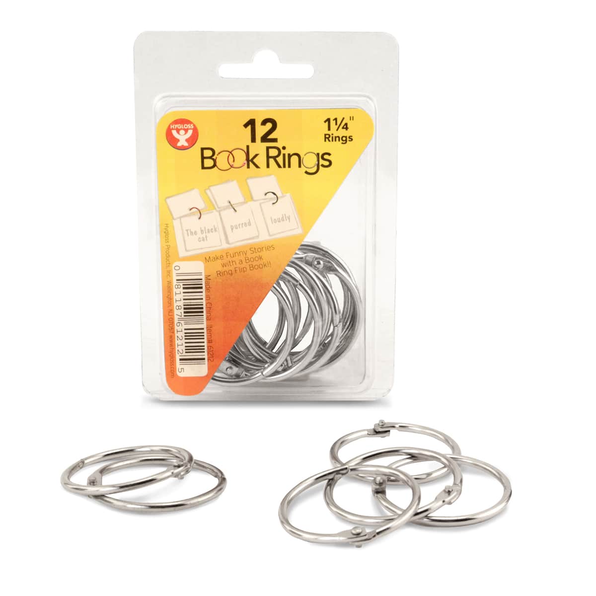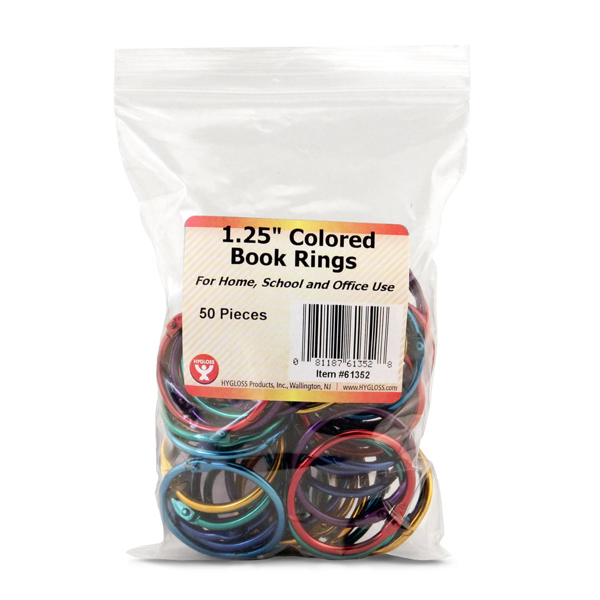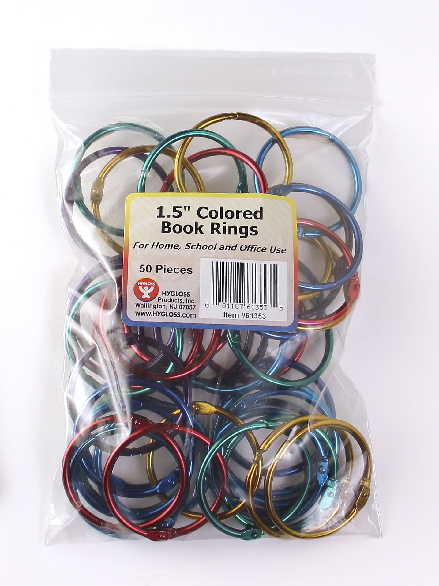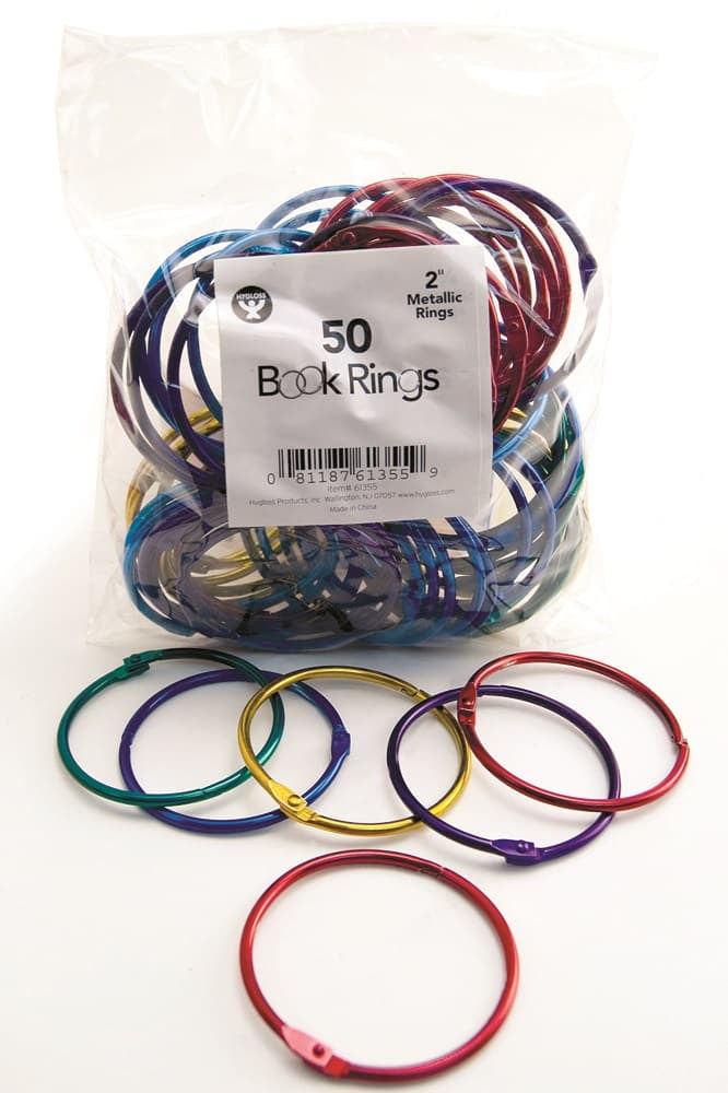 Durable Book Rings from Hygloss are the perfect solution for holding flashcards and other small notes. The binder rings come in sliver as well as metallic colors, such as red, yellow, green, blue and purple. They are available in a variety of sizes and quantities.