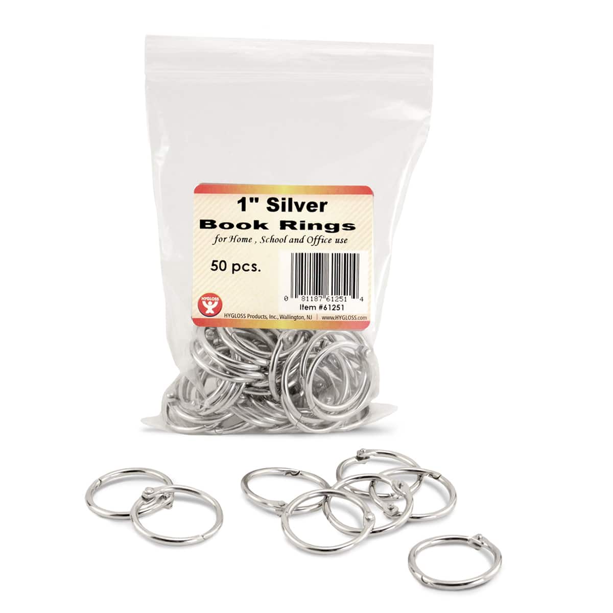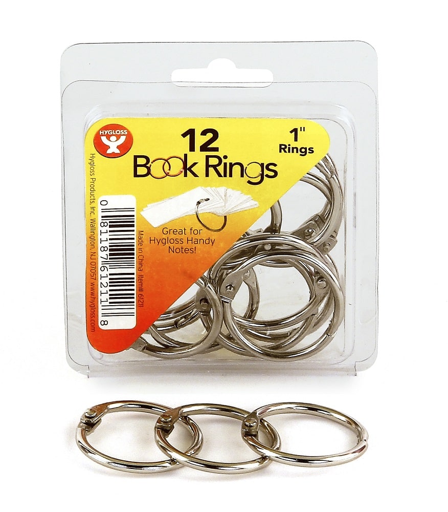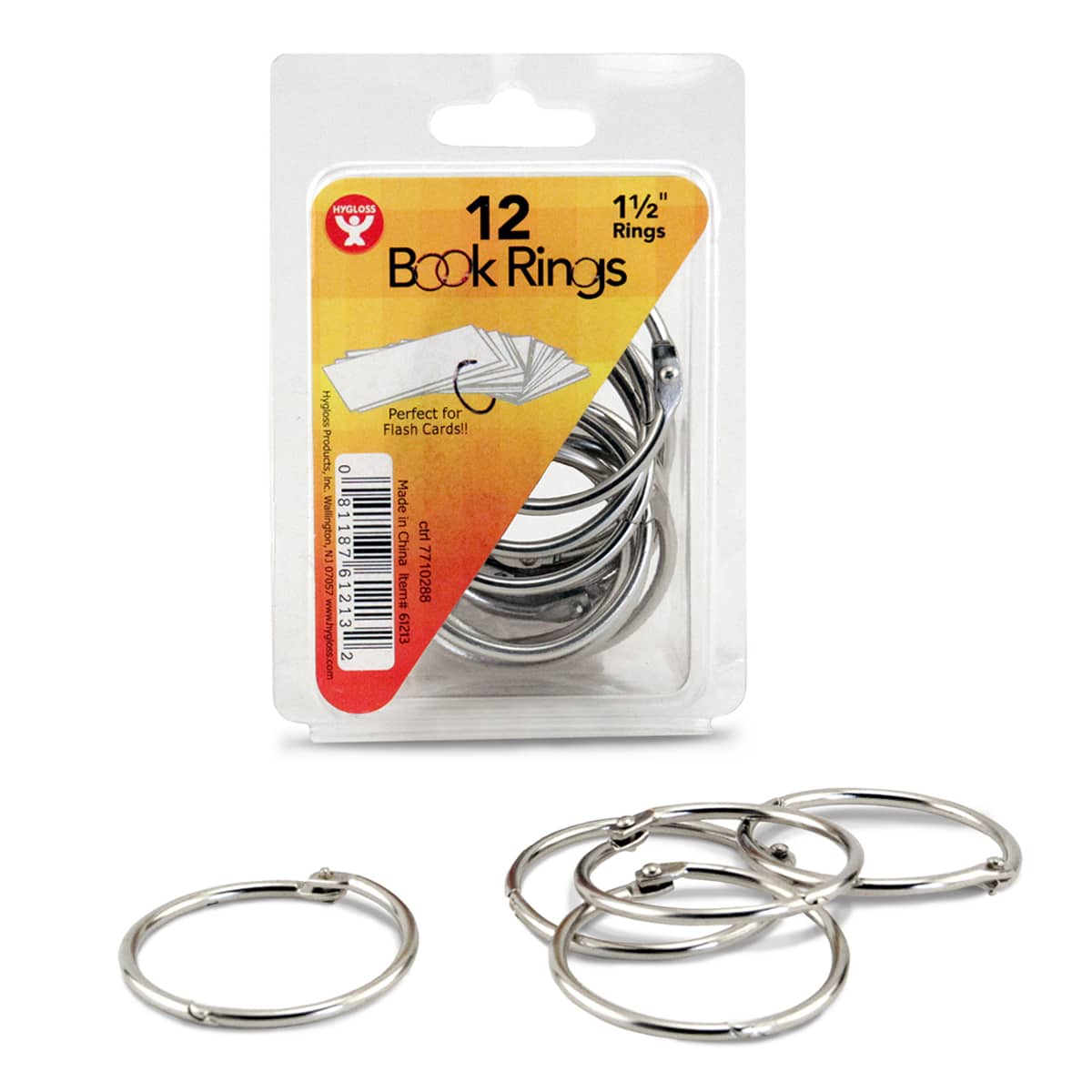 Durable Book Rings from Hygloss are the perfect solution for holding flashcards and other small notes. The binder rings come in sliver as well as metallic colors, such as red, yellow, green, blue and purple. They are available in a variety of sizes and quantities.