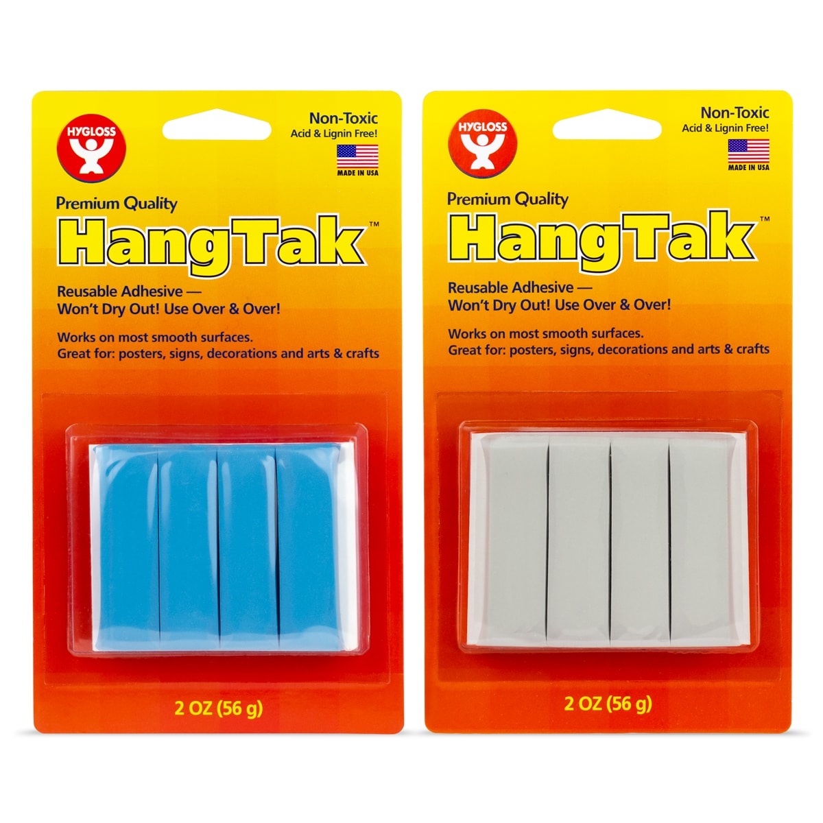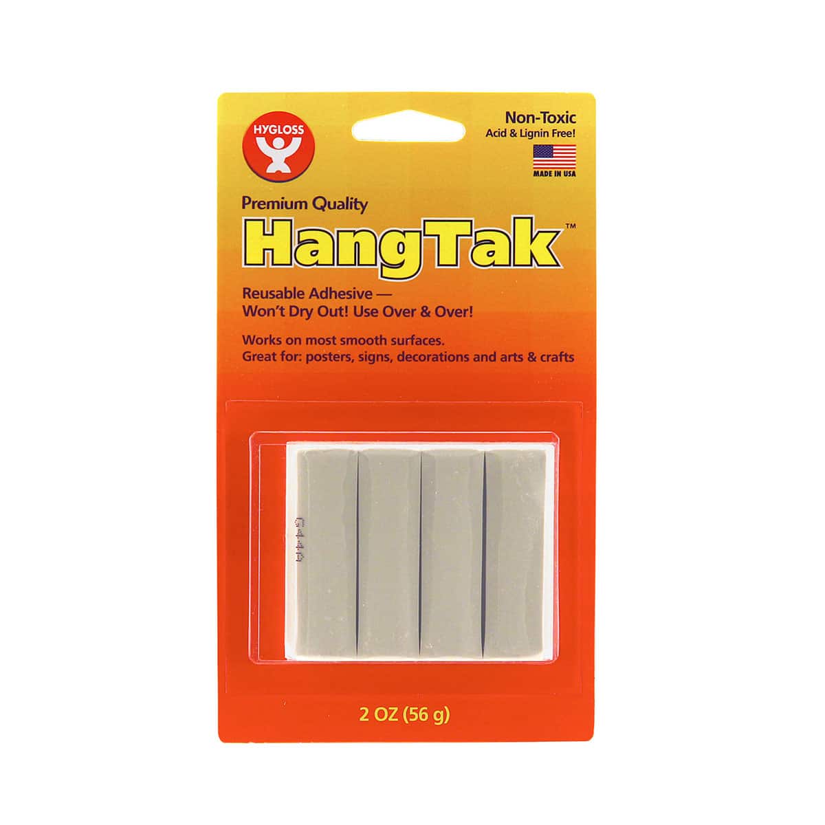 Use Hygloss Hangtak poster putty in place of tape, tacks and nails to hang objects around your home or office. Great for renters that don’t want to damage the walls. This wall sticky tack is perfect for hanging posters, cards, artwork, decorations, photos, craft projects and more. It creates a strong bond with whatever you are trying to hang.