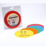 Great for crafts, classroom decorations and more! Enjoy using these bright color paper circles, pre-cut for your convenience. Great for any craft project, these 5 inch circles are especially useful for classroom decorations, bulletin board decorations, memory albums, and kids crafts. Package includes 10 each of red, orange, yellow, green and blue.