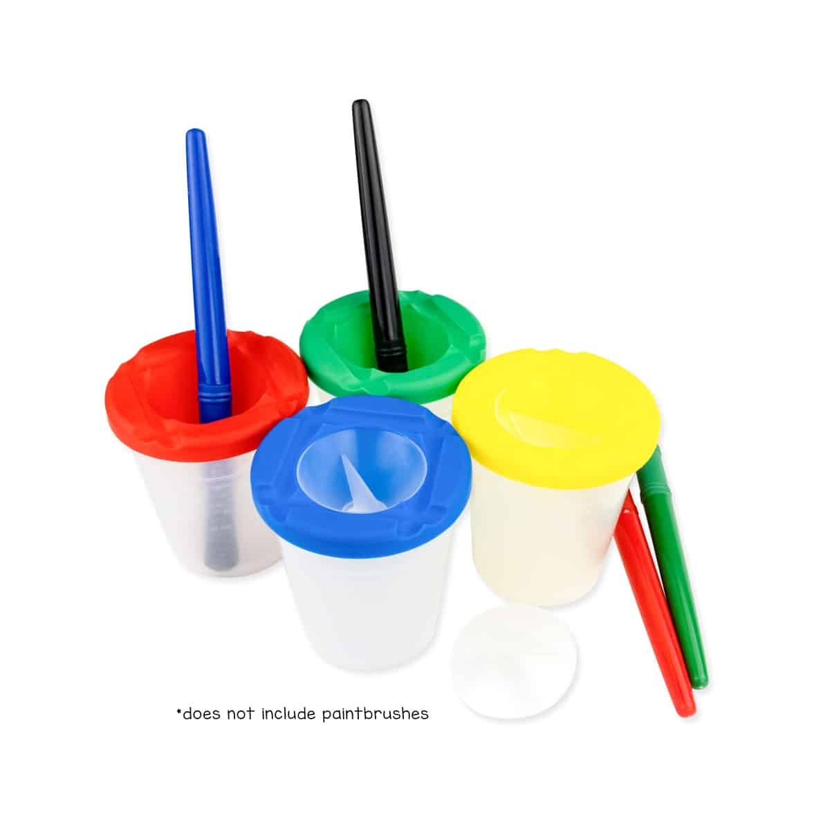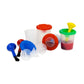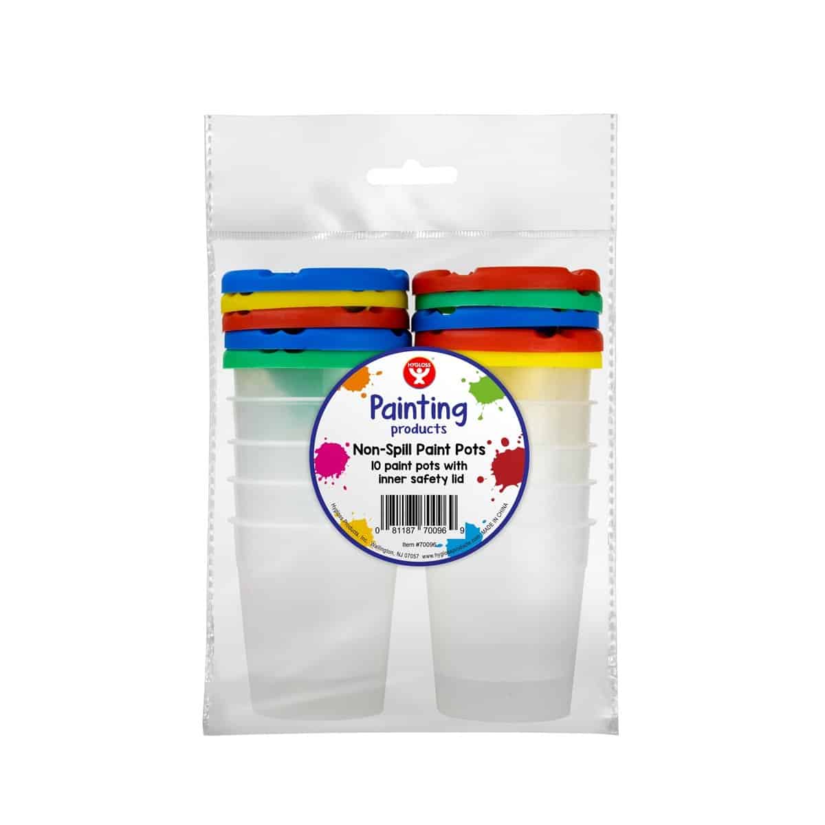 These non-spill paint cups help eliminate some of the mess involved in children's painting projects. They come with brightly colored inner safety lids, and the center opening is wide enough for stubby brushes.