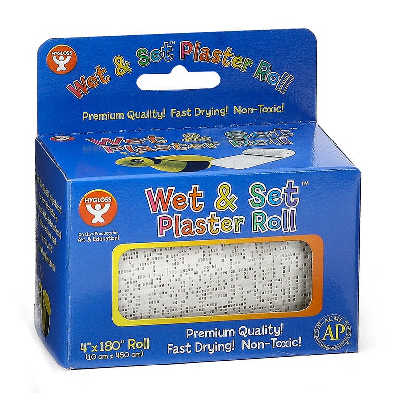 With the Wet and Set Plaster roll you can quickly and easily create cool masks, molds, and sculptures, without a mess. Plaster Roll is 4-inches wide. Choose from 9-feet long or 15-feet long. With the Wet and Set Plaster Roll you can cut, wet and make masks, plaster molds, sculptures and more... without a mess! This plaster dries within 30 minutes, and then dry you can apply paint or other embellishments to your fine works of art.