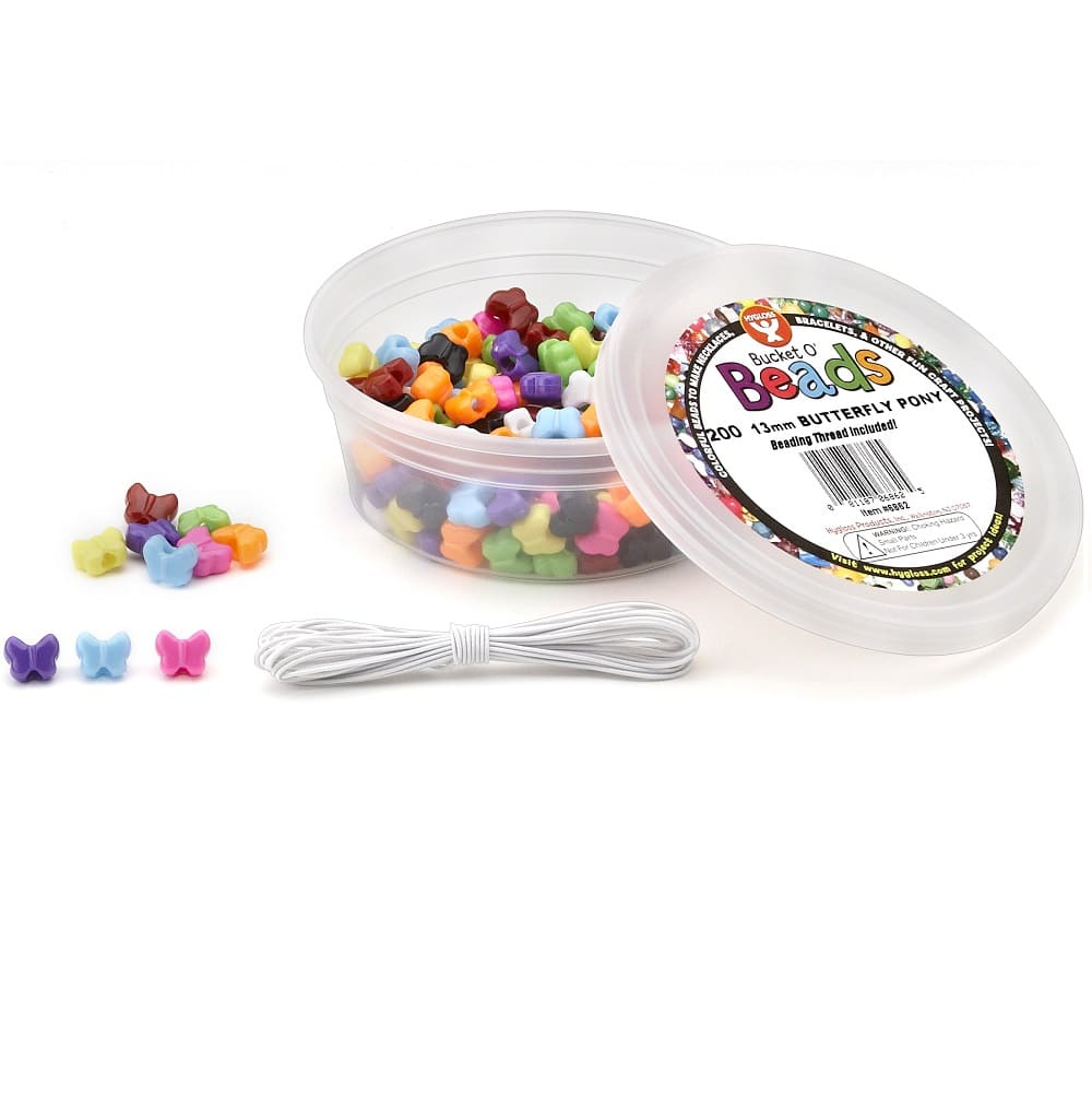 Includes 200 beads and elastic beading thread. Hygloss Butterfly Pony Beads come in bright assorted colors. Beads have a smooth and glossy finish, with 4 mm wide holes, to make beading easier for small hands. Use Butterfly Pony Beads to produce unique handmade jewelry. Perfect for kids spring crafts and for all year round.