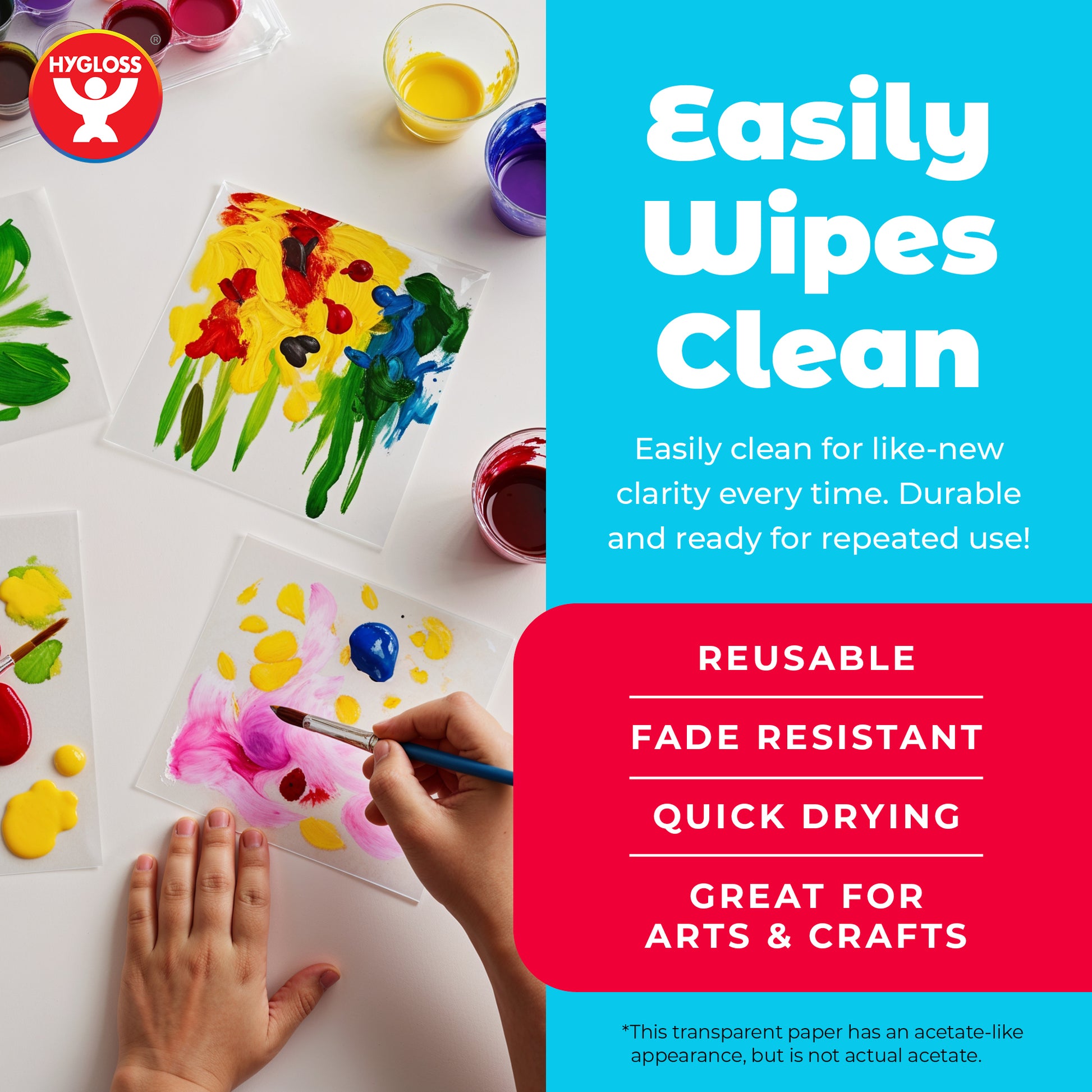 The clear sheets are 7 mil thickness and high clarity. They measure 8.5 x 11 inches. Hygloss Products Transparent Acetate Sheets will come in handy for loads of uses in the classroom, office and at home. Using these acetate sheets in an overhead projector is a great way for teachers to make any lesson clear and fun. You can also use them to make stencils, homemade cards or crafts with windows, wizard hats and more. You can even use with dry erase markers, creating your own inexpensive dry erase board!