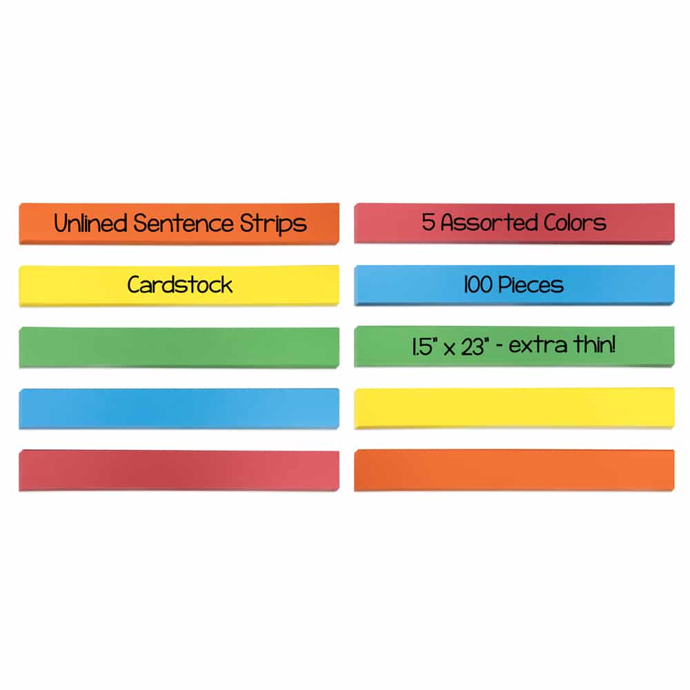 Bright Sentence Strips - Thin, 1.5 x 23" - Cardstock