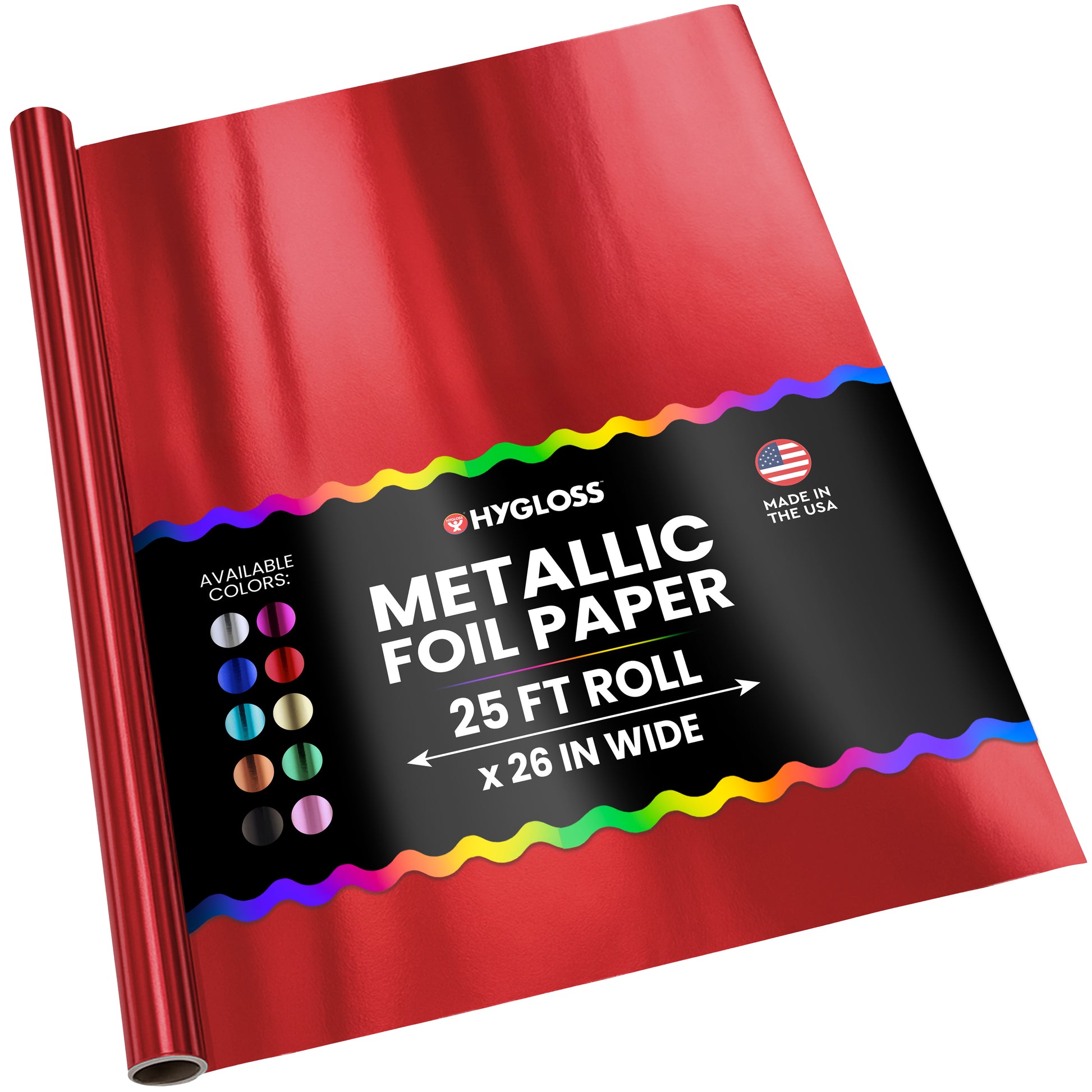 Get Hygloss Metallic Foil Paper Rolls, a fabulously reflective specialty paper, in vibrant colors. This shiny paper is perfect for gift wrap and crafts.