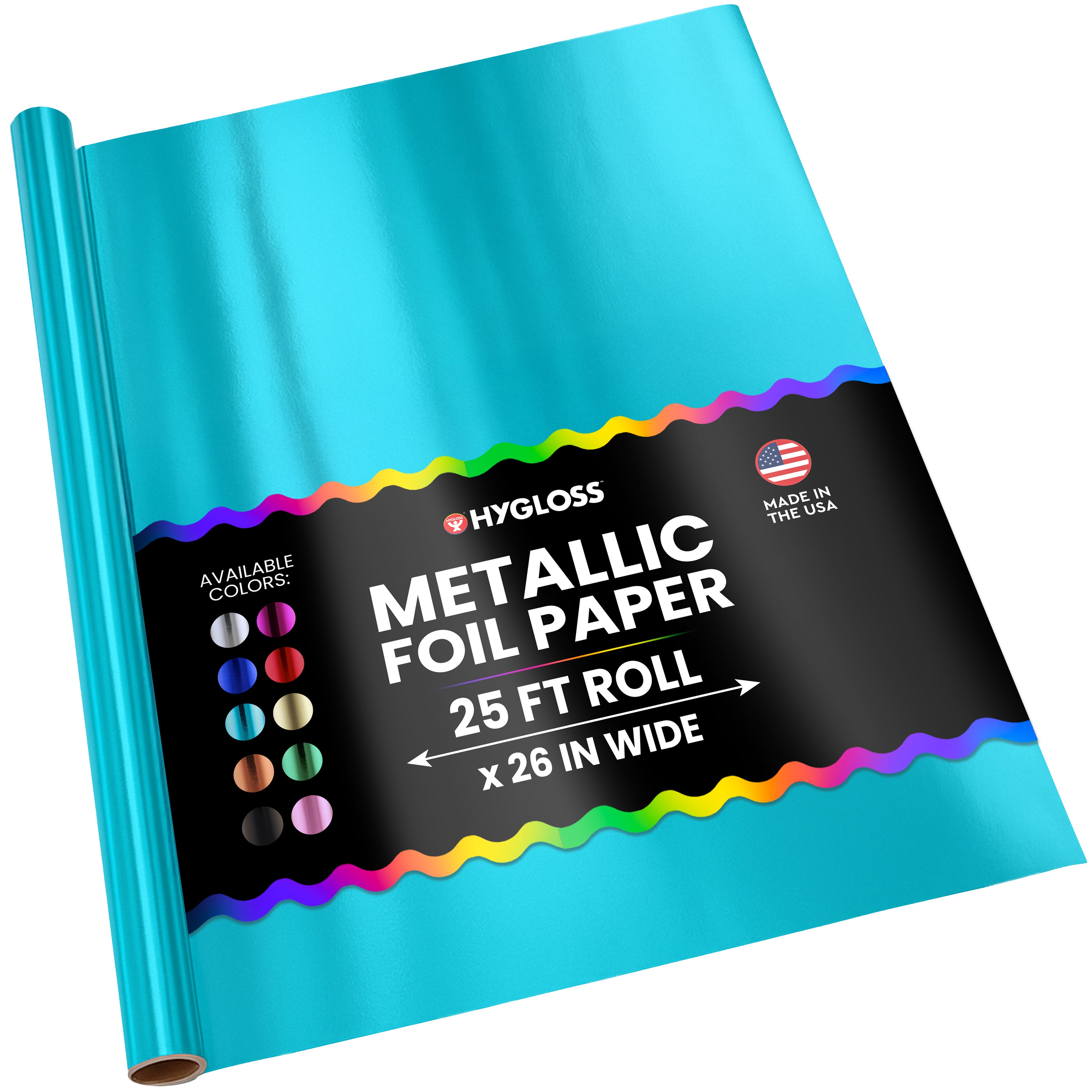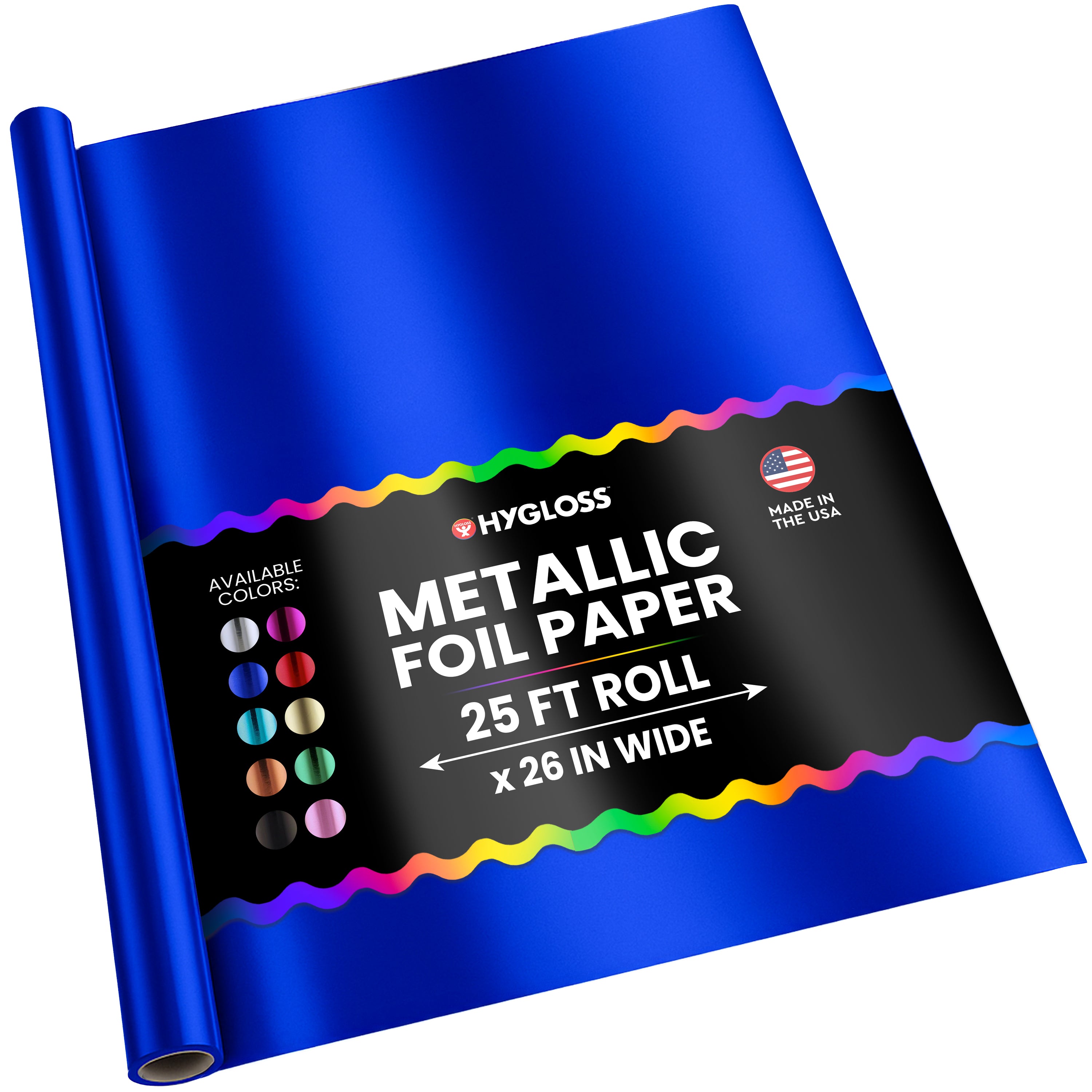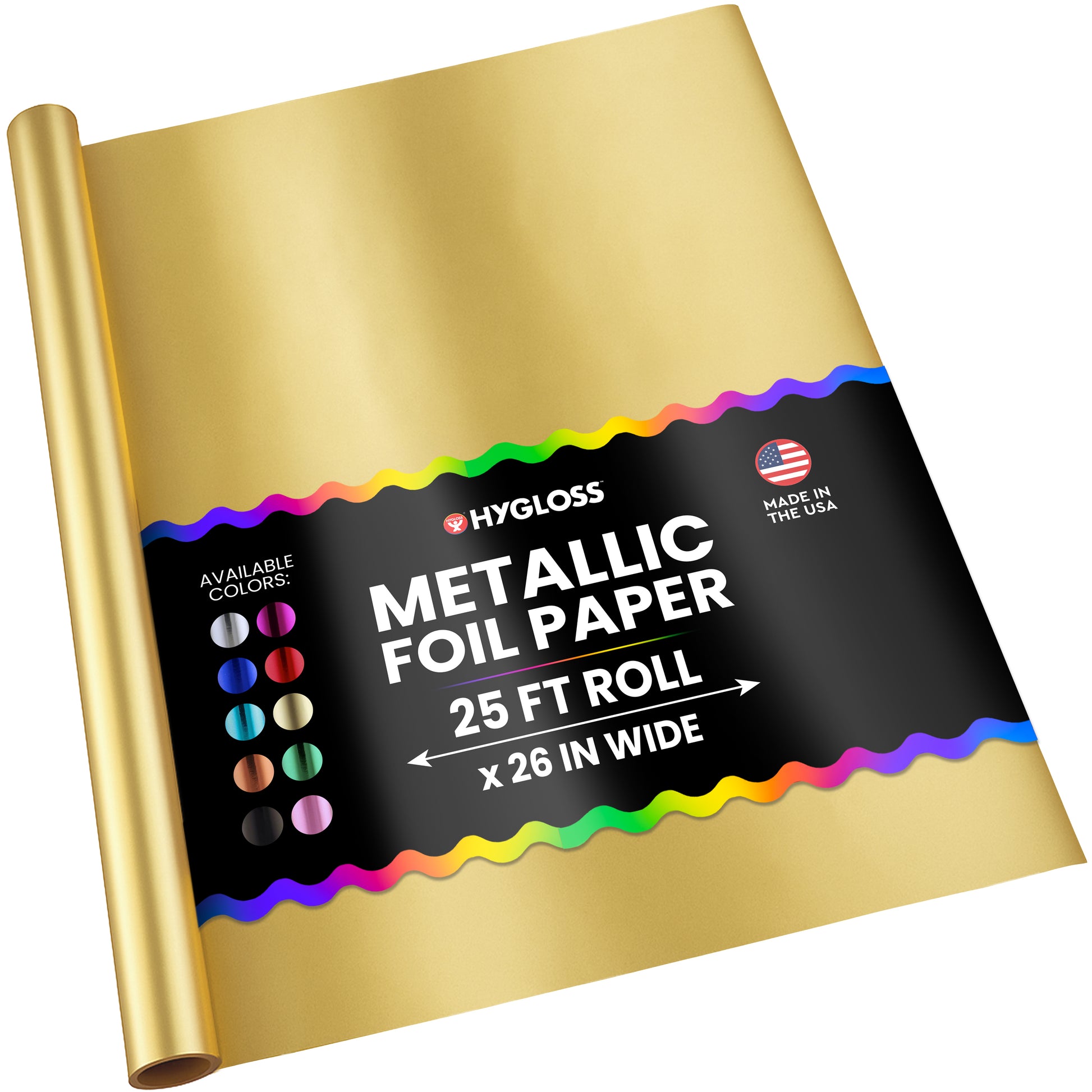 The paper on each rolls measures 26 inches tall x 25 feet long. Hygloss metallic foil paper rolls are superior quality shiny paper for all your crafts and gift wrapping. The paper has metallic foil coating on one side and is white on the reverse side. Make a huge variety of bulletin board and wall display items, teaching assistance tools, holiday crafts and decorative projects. Use Metallic Paper Rolls for all your gift-wrap needs; the shiny reflective finish will be the perfect finishing touch to your gifts.