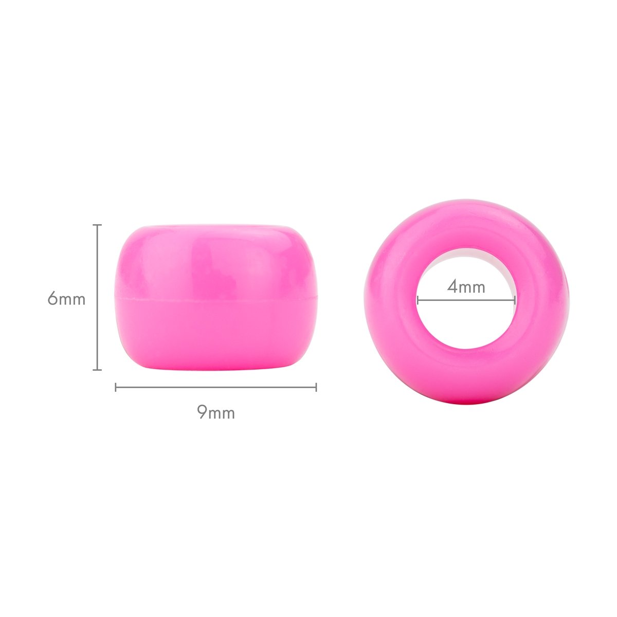 The beads measure 6 mm x 9 mm. The diameter of the hole is 4 mm.