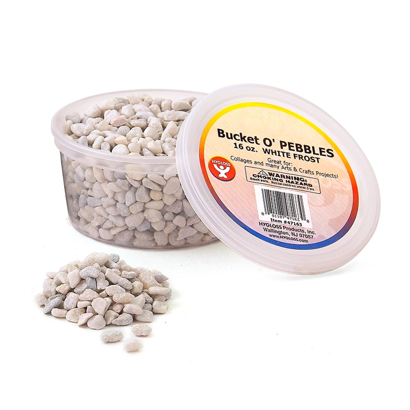 Decorative pebbles in unique color combinations add zest to your crafts projects. Decorative pebbles can be used to beautify your home or classroom. Use colored pebbles to make distinct crafts projects such as paper weights, vases, and collages. Sold in buckets of 16 oz.