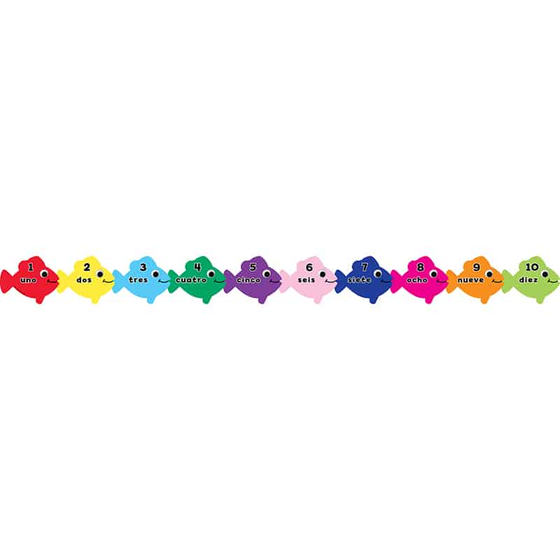 Our Counting in Spanish Fish Classroom Border teaches numbers 1-10 in Spanish, decorating your classroom with creative colored swimming fish.