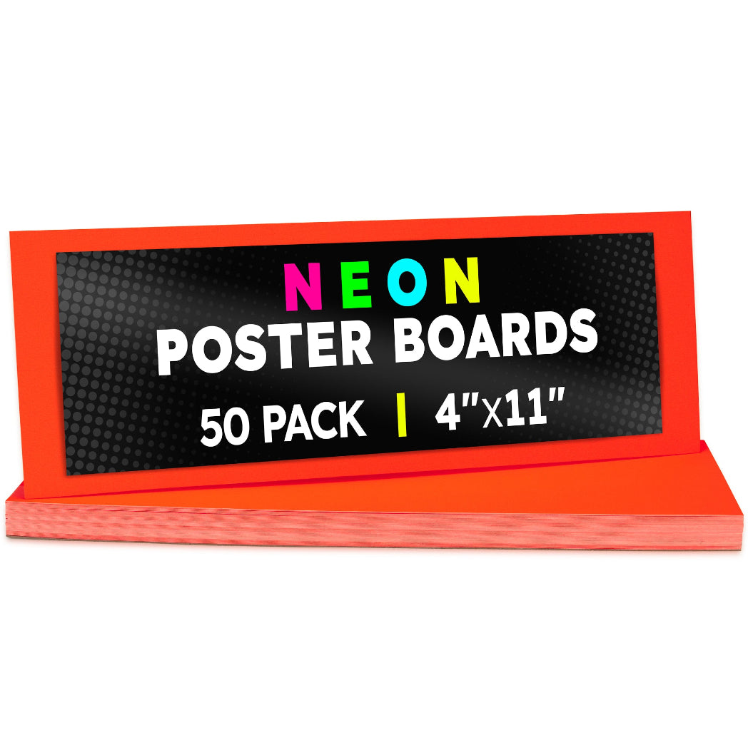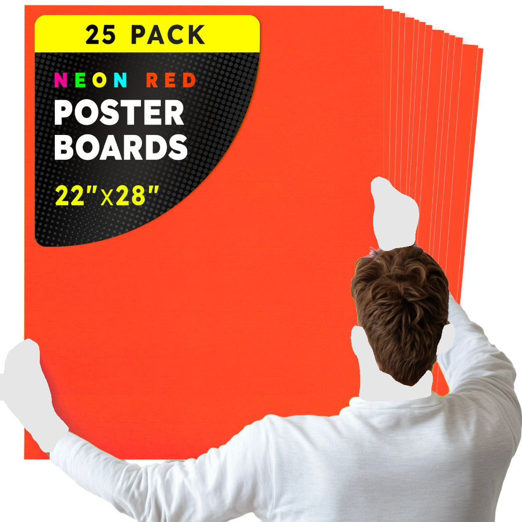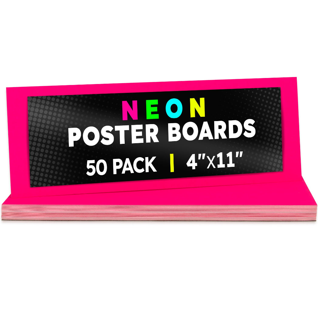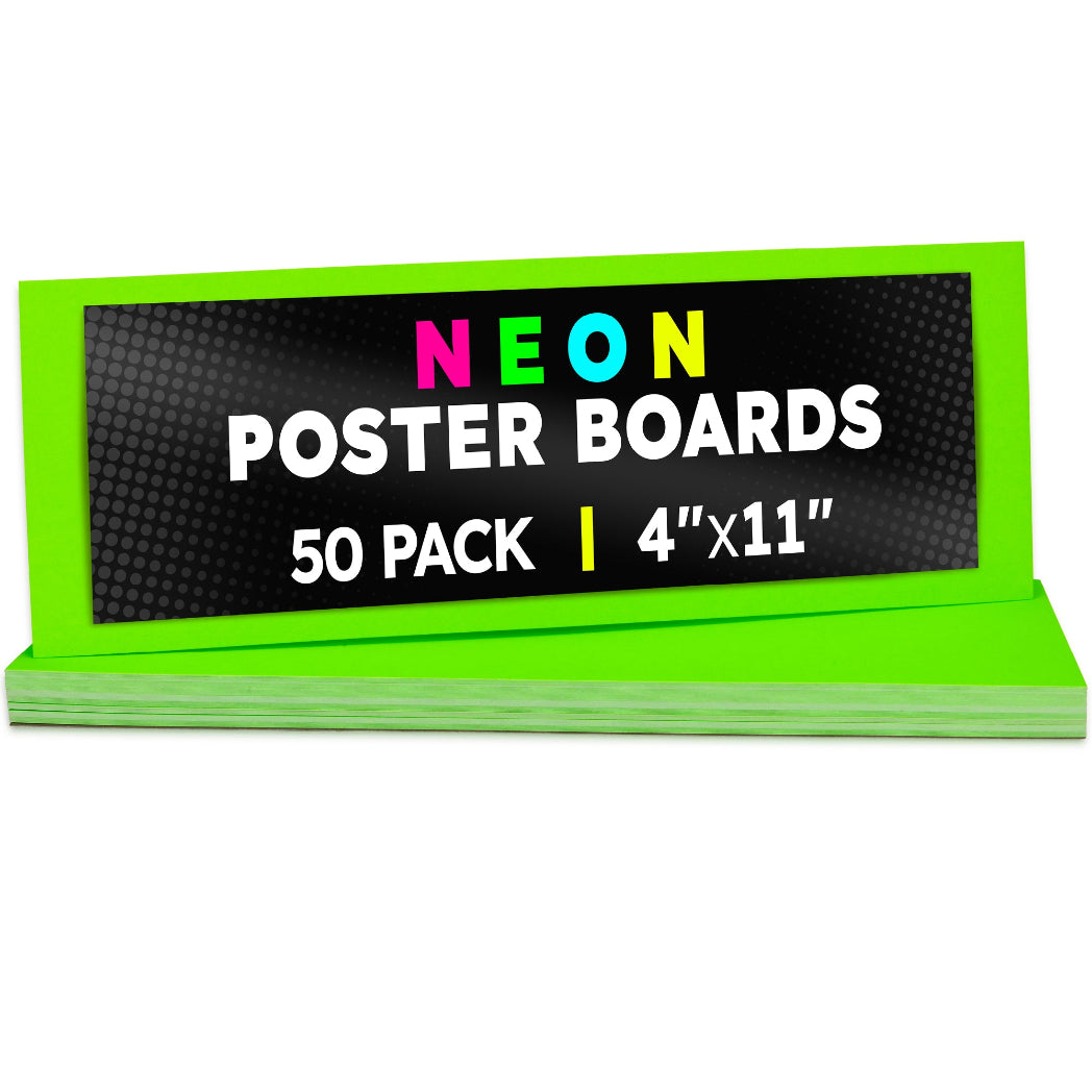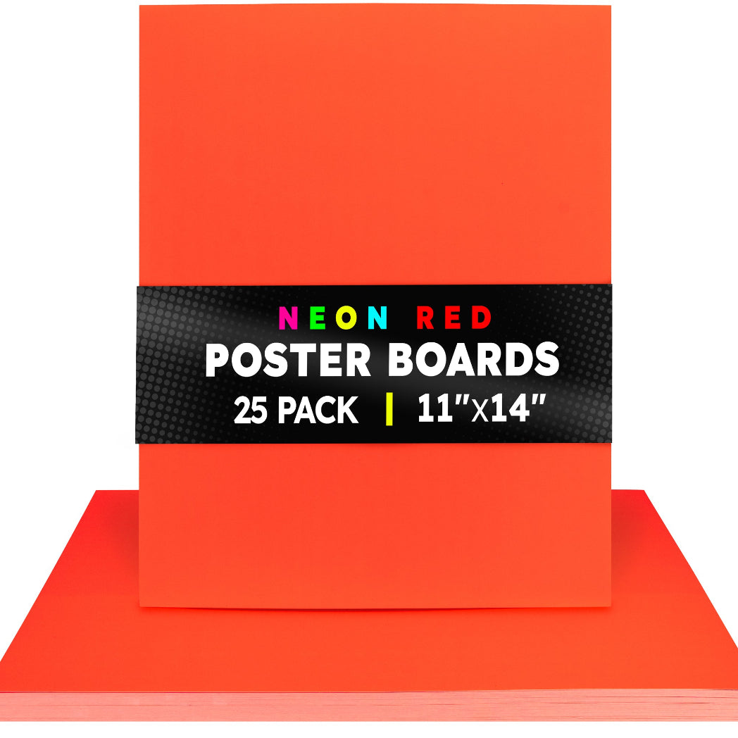 Choose from 2 sizes: 22 x 28 inches or 11 x 14 inches. The all-popular neon poster board is now available in an upgraded version: colored on both sides! Use Hygloss Double Sided Fluorecsent Poster Board for all your craft needs. From classroom decorations to eye-catching posters, these exciting fluorescent colors will give your projects and signs some extra glow! These premium quality poster boards are great for 3-D crafts, costumes, party decor and more. Package includes 25 fluorescent poster board sheets. Choose between a pack of 11 x 14 inch poster boards, or a dispenser box of large size posterboards measuring 22 x 28 inches.