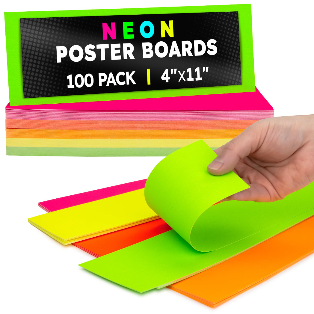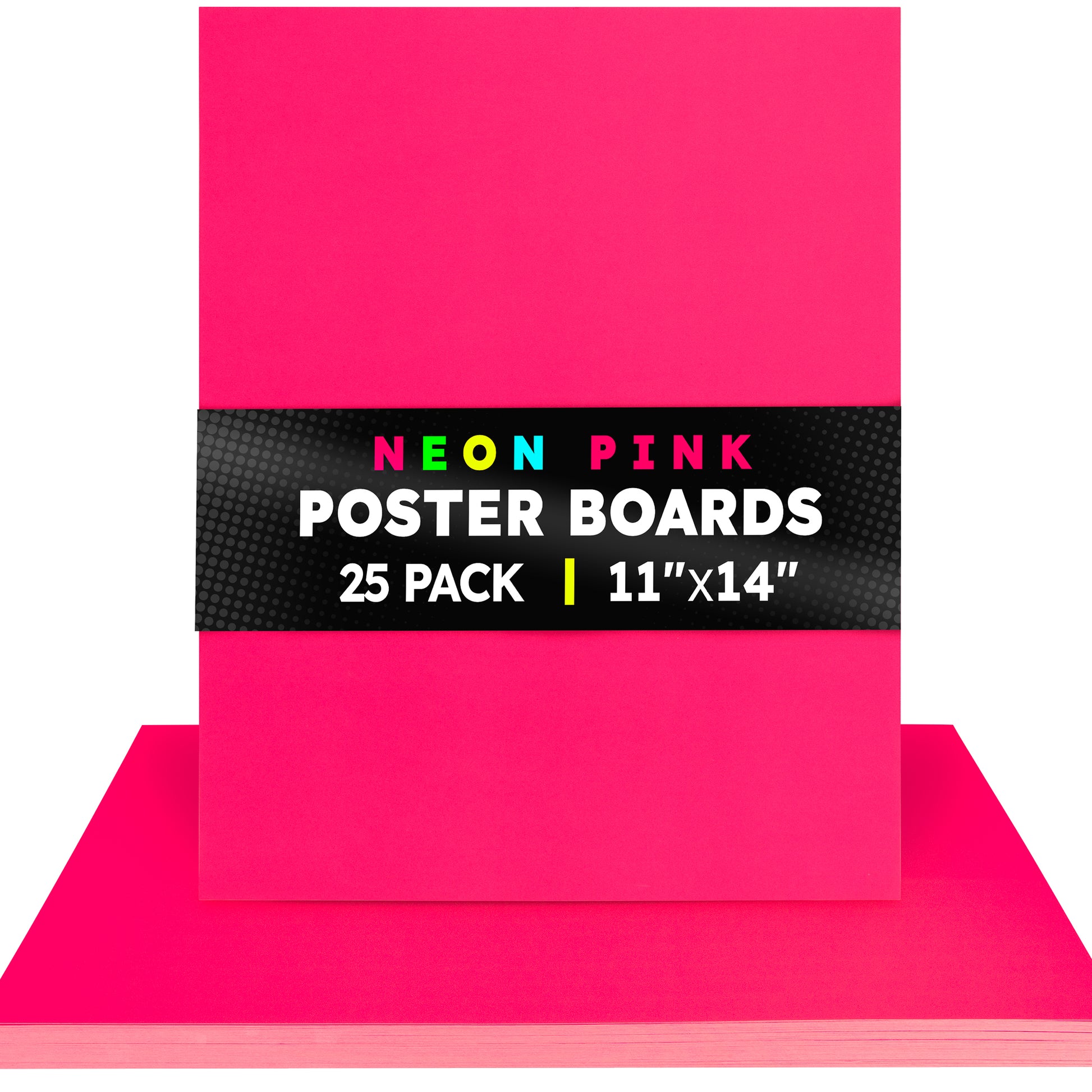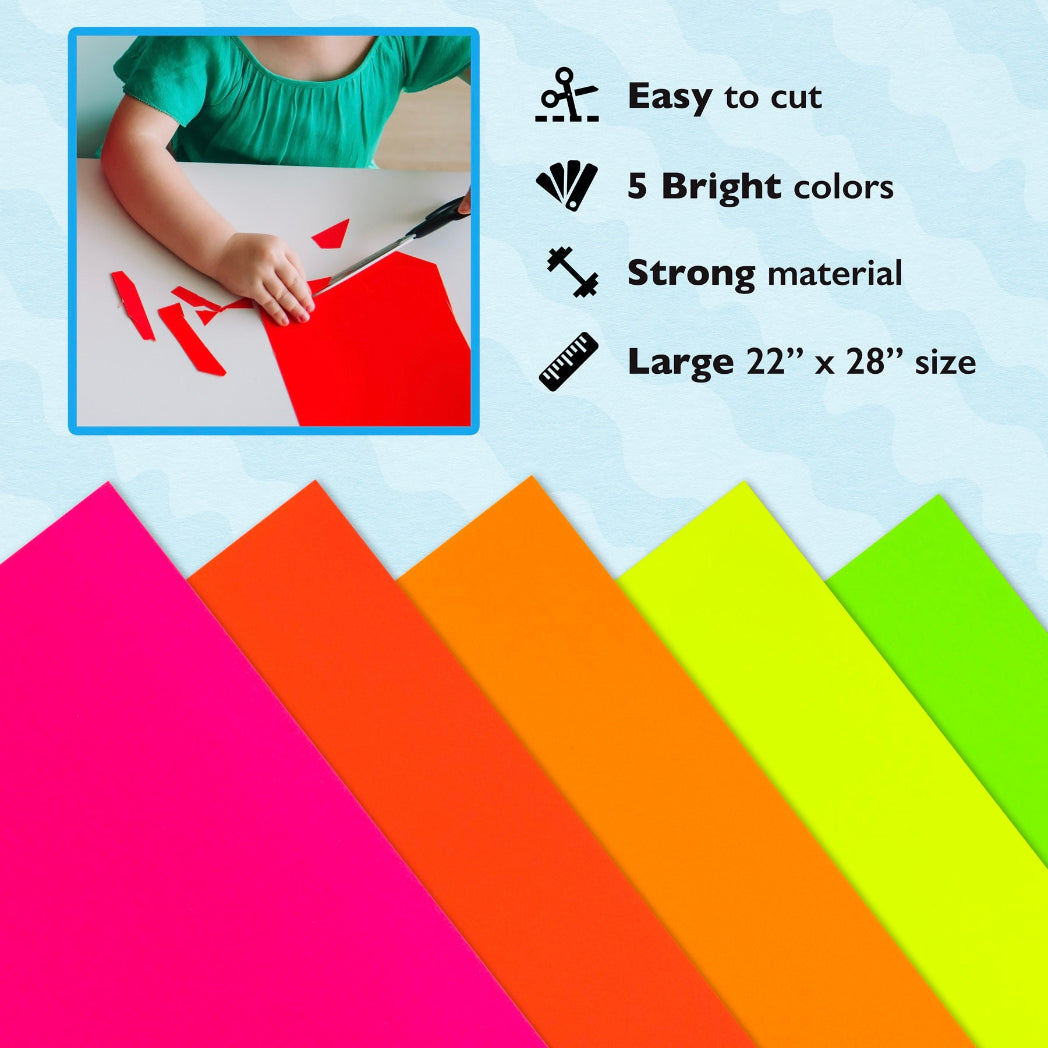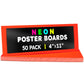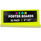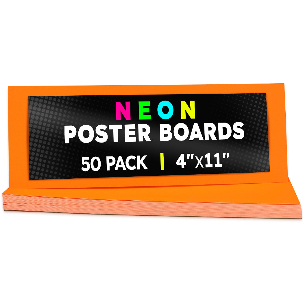 Choose from 2 sizes: 22 x 28 inches or 11 x 14 inches. The all-popular neon poster board is now available in an upgraded version: colored on both sides! Use Hygloss Double Sided Fluorecsent Poster Board for all your craft needs. From classroom decorations to eye-catching posters, these exciting fluorescent colors will give your projects and signs some extra glow! These premium quality poster boards are great for 3-D crafts, costumes, party decor and more. Package includes 25 fluorescent poster board sheets. Choose between a pack of 11 x 14 inch poster boards, or a dispenser box of large size posterboards measuring 22 x 28 inches.