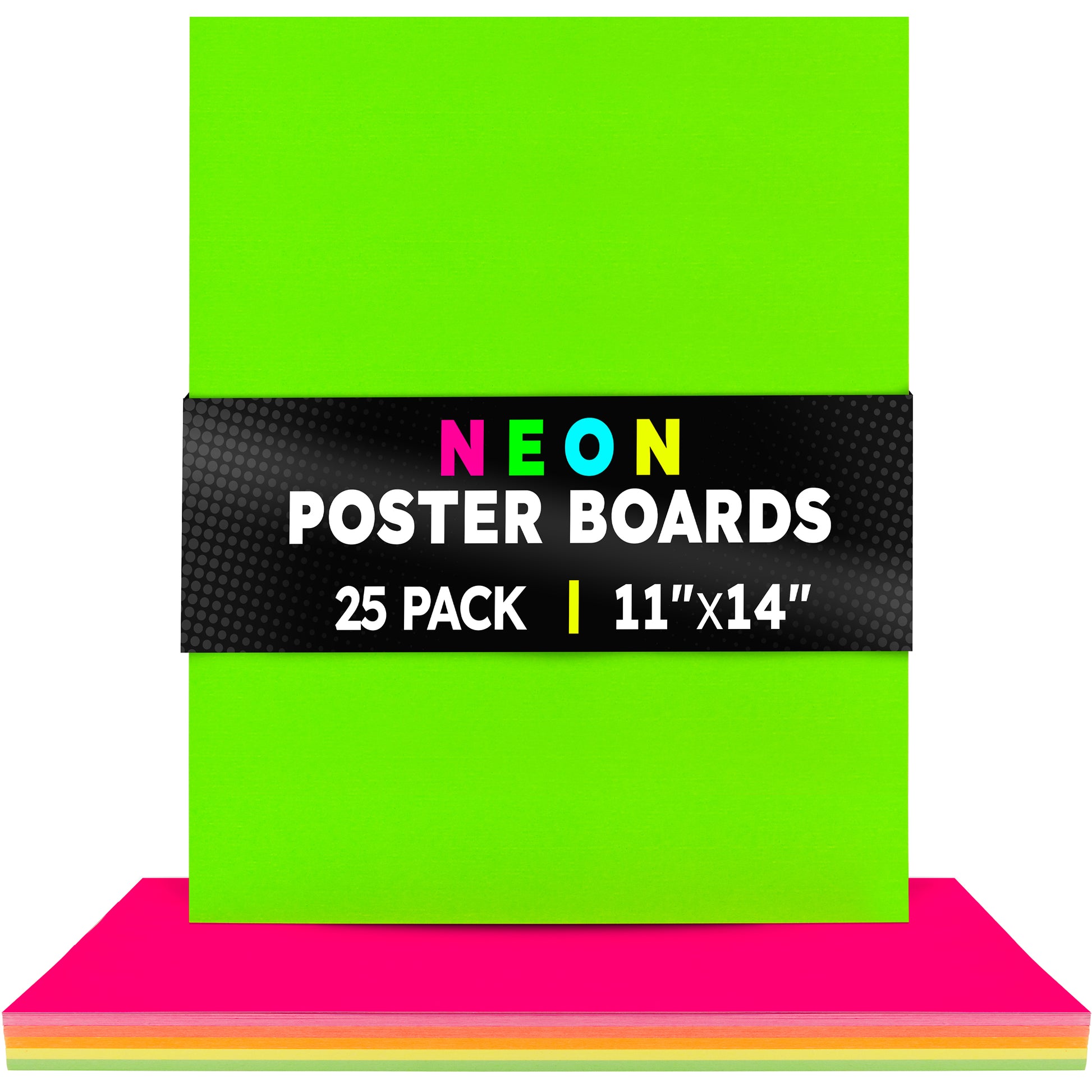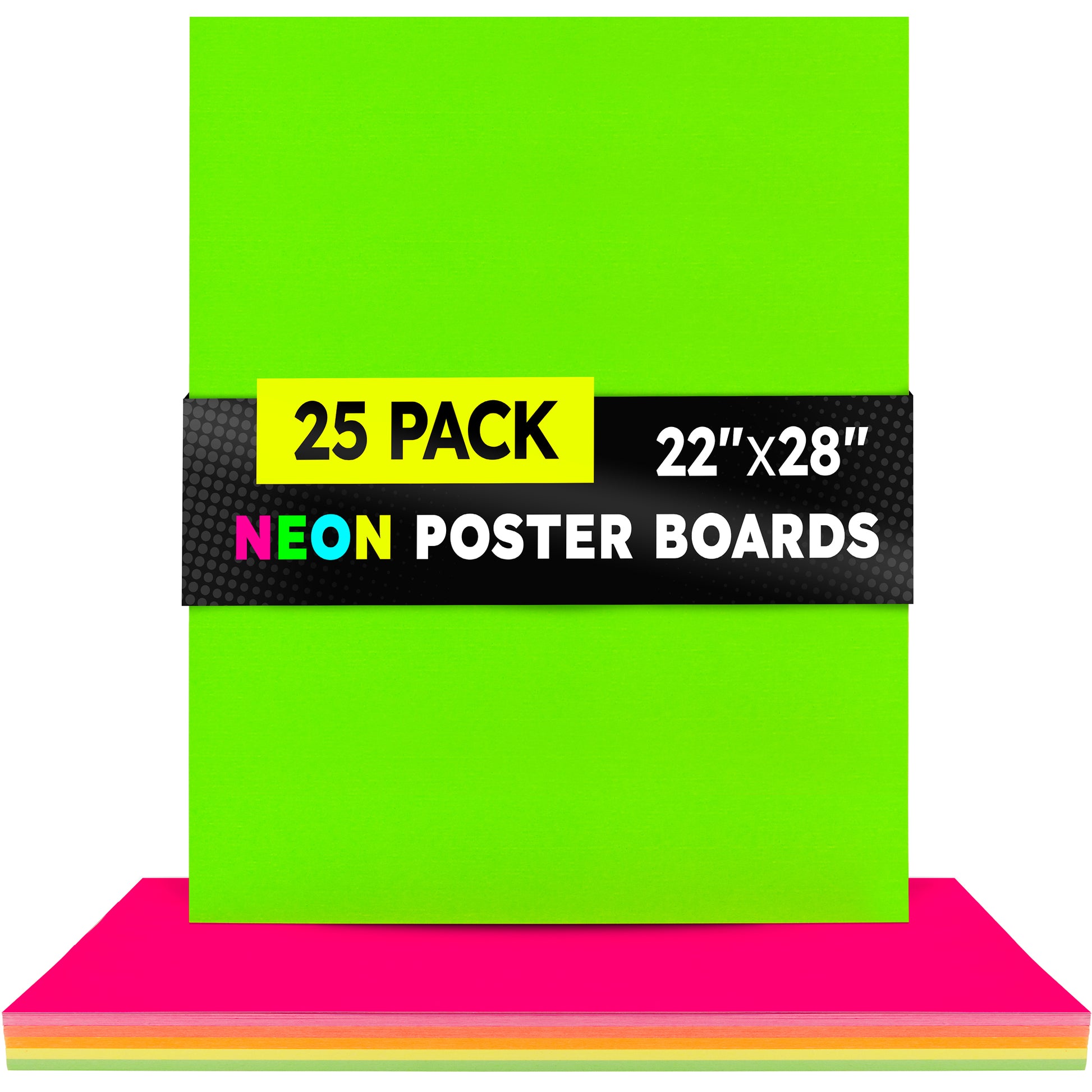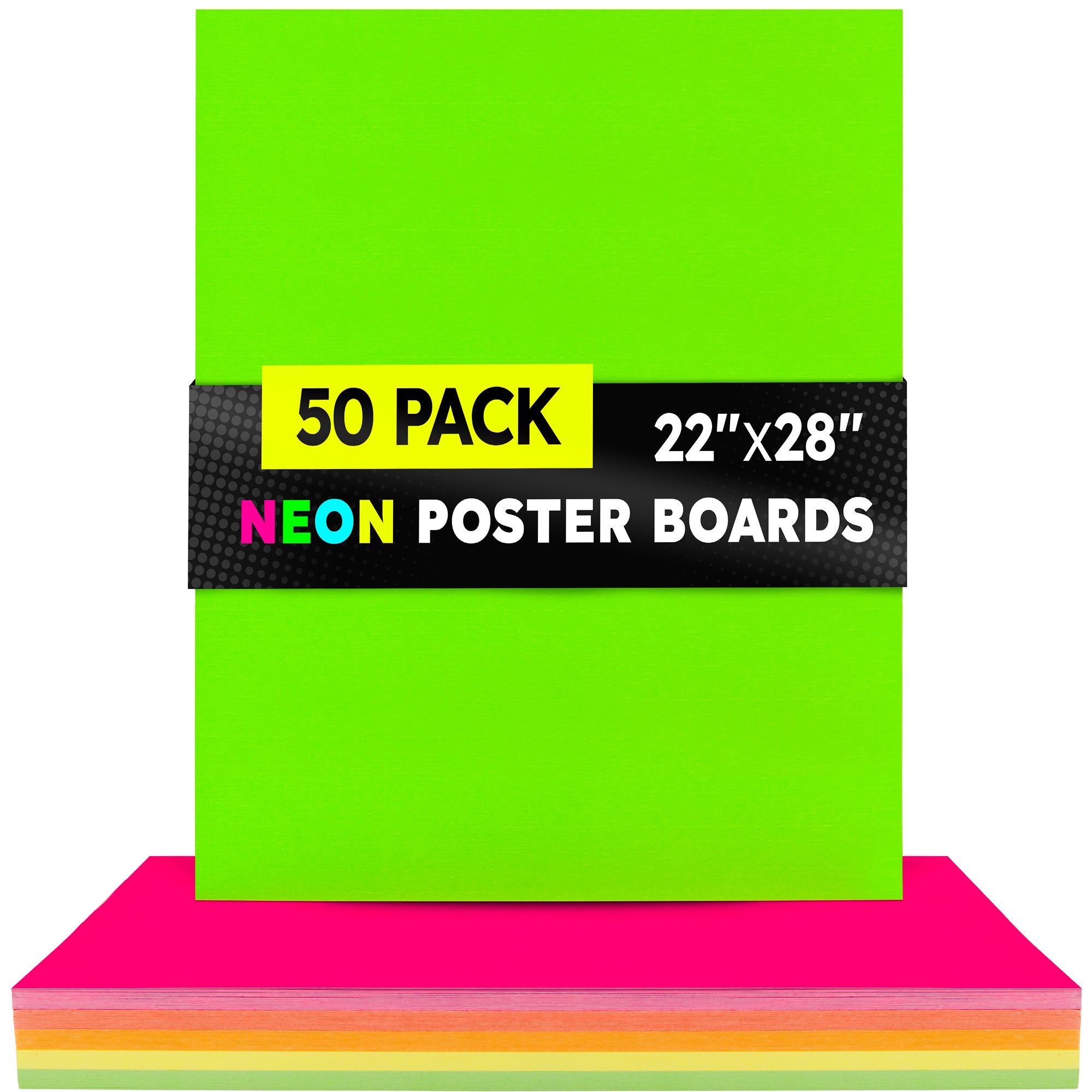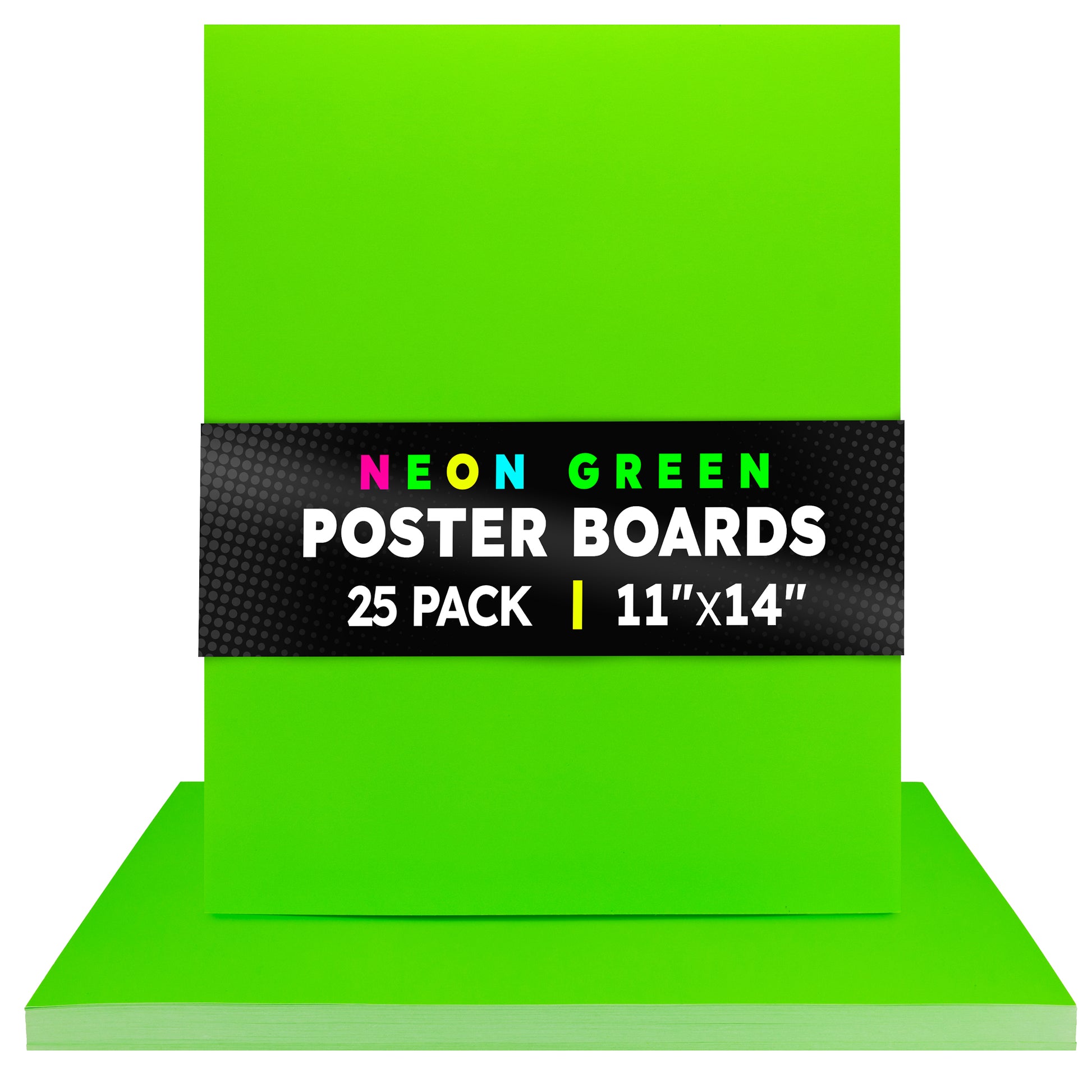Choose from 2 sizes: 22 x 28 inches or 11 x 14 inches. The all-popular neon poster board is now available in an upgraded version: colored on both sides! Use Hygloss Double Sided Fluorecsent Poster Board for all your craft needs. From classroom decorations to eye-catching posters, these exciting fluorescent colors will give your projects and signs some extra glow! These premium quality poster boards are great for 3-D crafts, costumes, party decor and more. Package includes 25 fluorescent poster board sheets. Choose between a pack of 11 x 14 inch poster boards, or a dispenser box of large size posterboards measuring 22 x 28 inches.