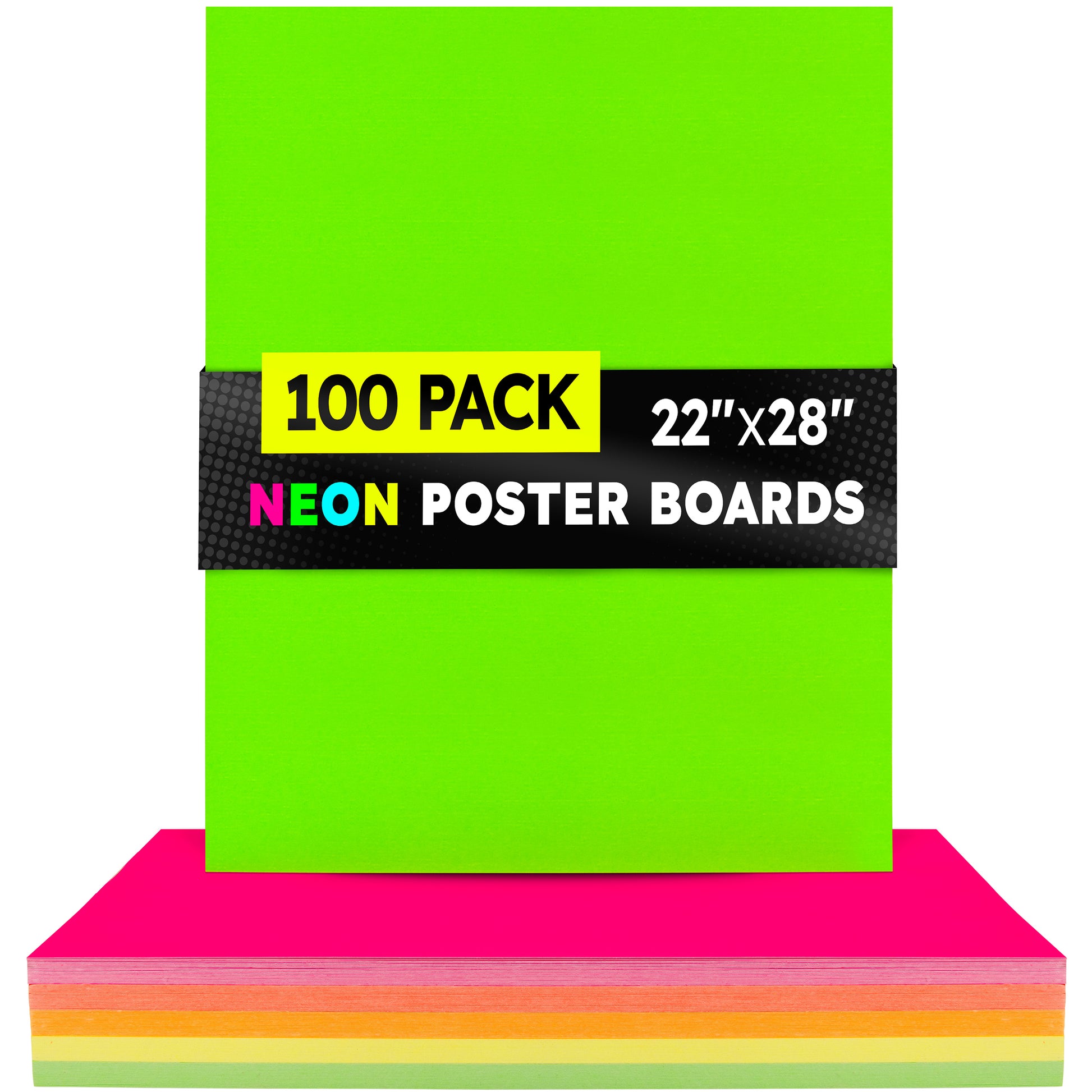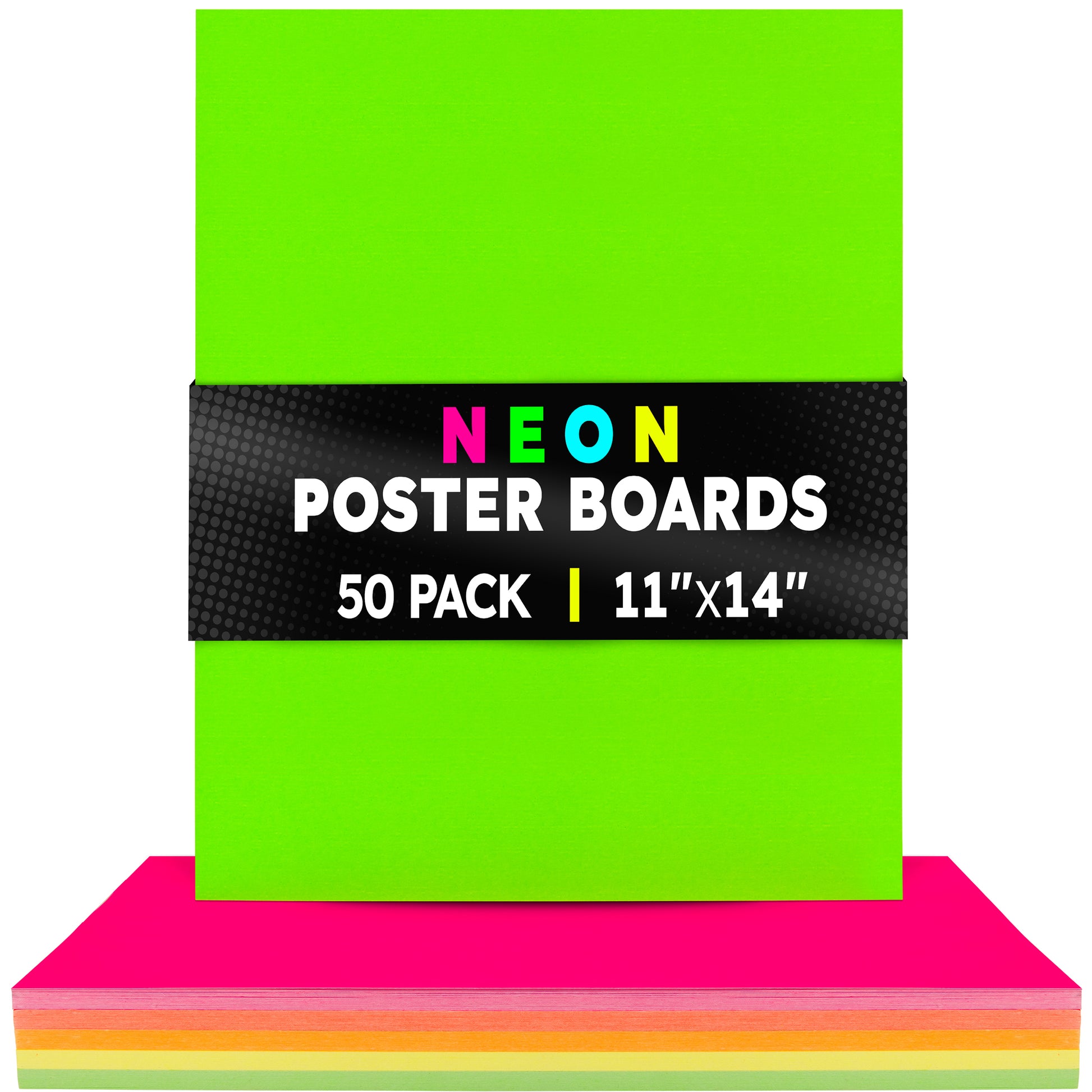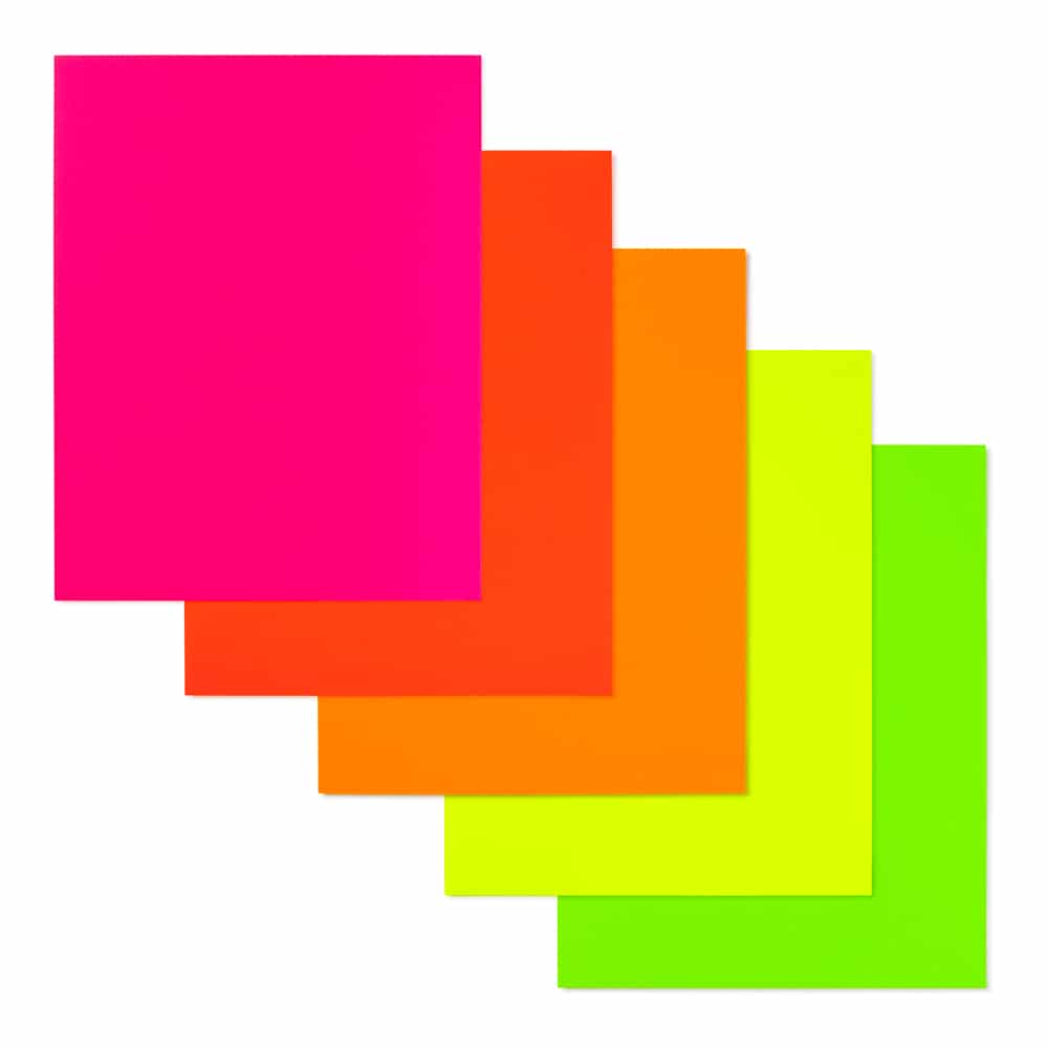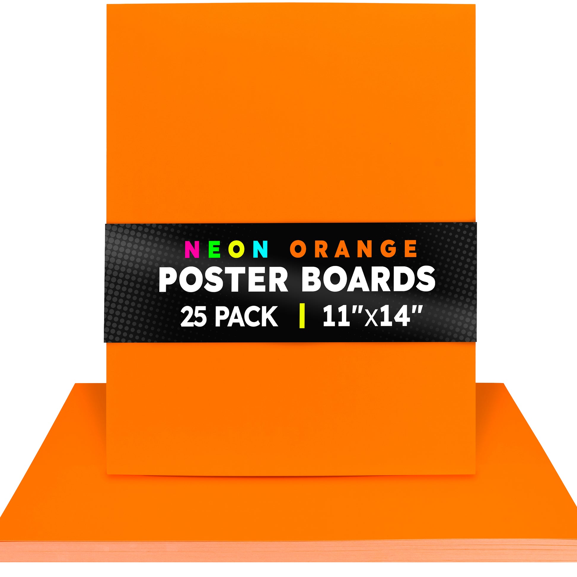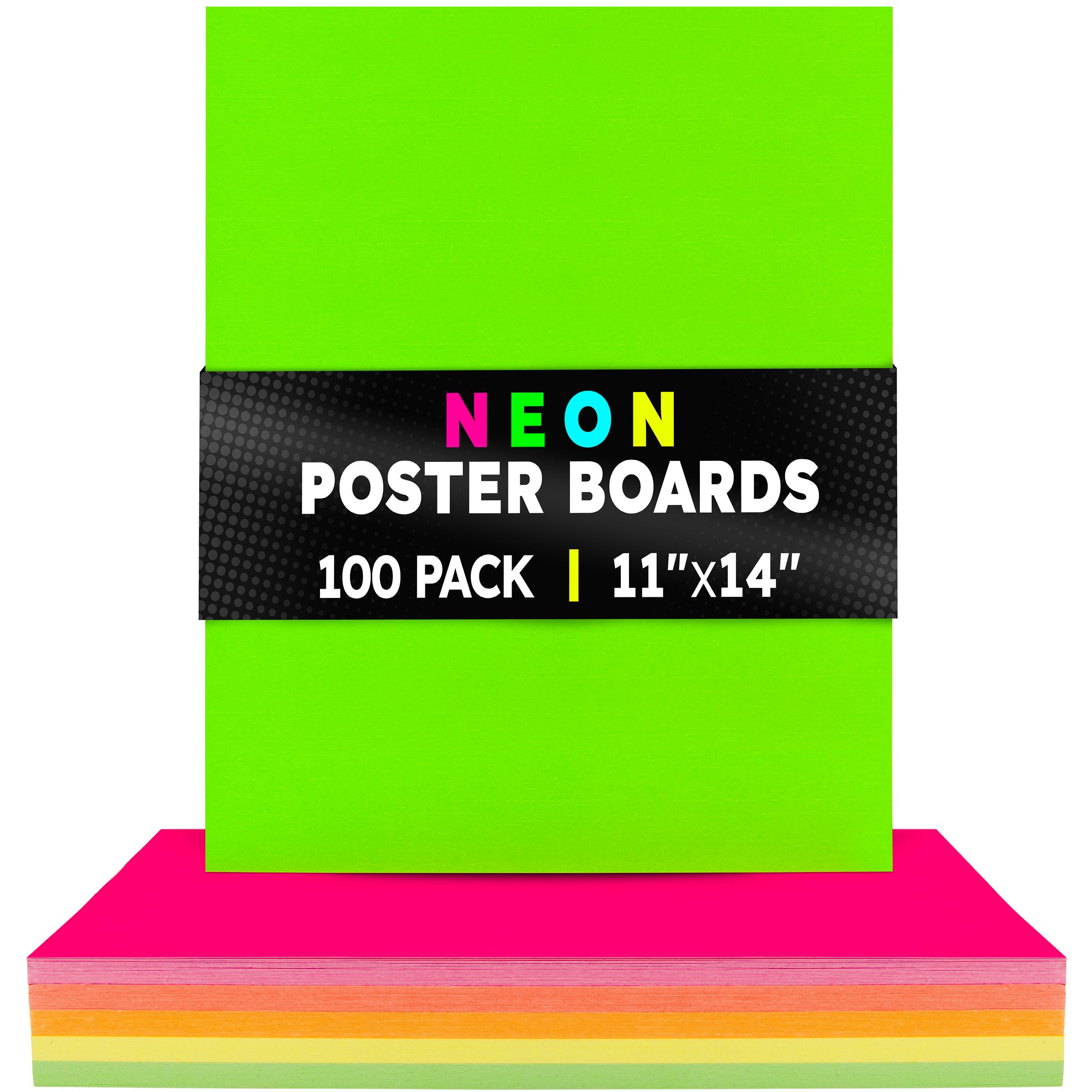 Choose from 2 sizes: 22 x 28 inches or 11 x 14 inches. The all-popular neon poster board is now available in an upgraded version: colored on both sides! Use Hygloss Double Sided Fluorecsent Poster Board for all your craft needs. From classroom decorations to eye-catching posters, these exciting fluorescent colors will give your projects and signs some extra glow! These premium quality poster boards are great for 3-D crafts, costumes, party decor and more. Package includes 25 fluorescent poster board sheets. Choose between a pack of 11 x 14 inch poster boards, or a dispenser box of large size posterboards measuring 22 x 28 inches.