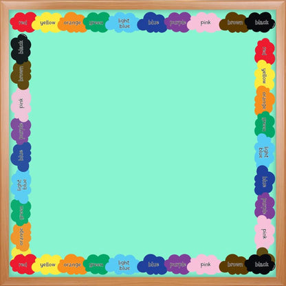Teachers love to decorate their bulletin board with this striking Paint Splotch Border, which helps students learn to recognize colors. Decorate your bulletin board with this striking Paint Splotch Classroom Border, which helps students learn to recognize colors. Teachers and students love the big bursts of color in the paint splotch border. When you frame your bulletin board, windows and posters with this colorful trim, it will add cheerful vibes to your classroom!