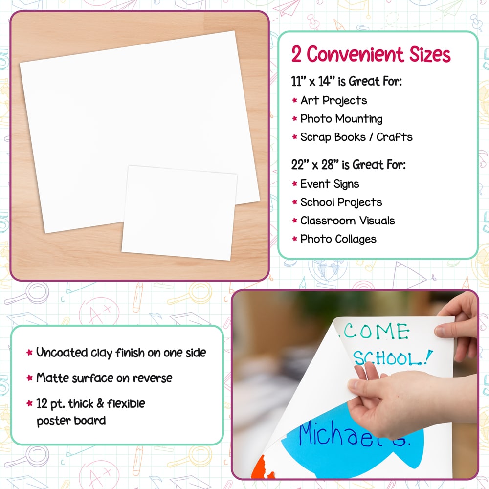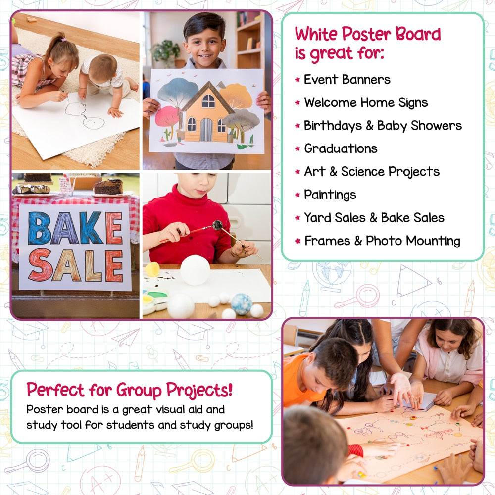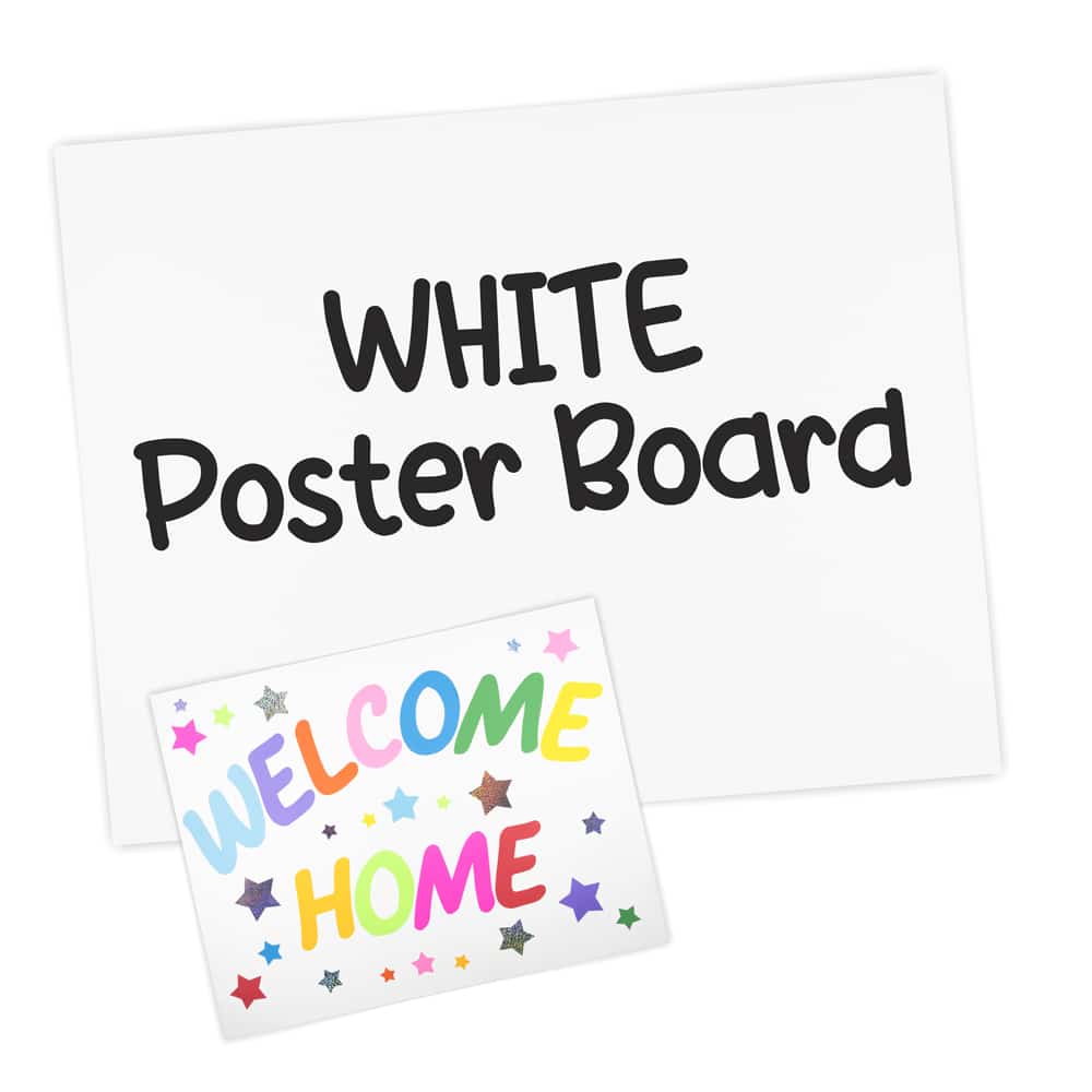Use this premium White Poster Board to create eye-catching event banners, welcome signs, and birthday displays. This large white poster board is ideal for school projects. Get white poster board in bulk for all your needs. Use Hygloss' premium White Poster Board to create eye-catching event banners, welcome signs, and birthday displays. These large white posters are ideal for school projects. Get white poster board in bulk for all your needs.