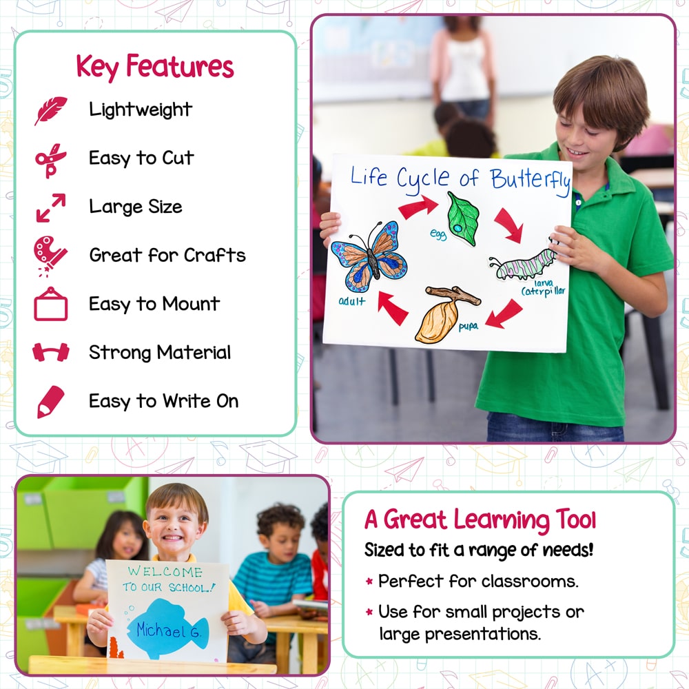 Customize your posterboard using your creativity and talent! These boards are easy to cut to any shape or size. Color with markers, crayons, or paint. Strong 12 pt. thickness supports various media.