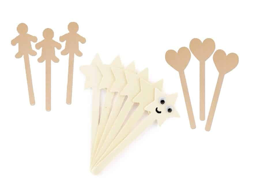 Hygloss Wood Die Cut Craft Sticks have been custom designed to include unique shapes that are die cut on top of the sticks. These sticks are perfect for painting, decorating, and great to use with Hygloss Library Pockets. Hygloss Wood Die-Cut Craft Sticks are the all-time favorite craft sticks with a die-cut shape at the top! Choose from hearts, stars or people shape, and let the fun begin. You can decorate them to use as bookmarks, cupcake toppers, puppets, or anything else you dream up. You can paint them, then glue on some cool embellishments such as gemstones, sequins, buttons, wiggle eyes or glitter. The Die Cut Craft Sticks also work great in the pockets of a pocket chart.